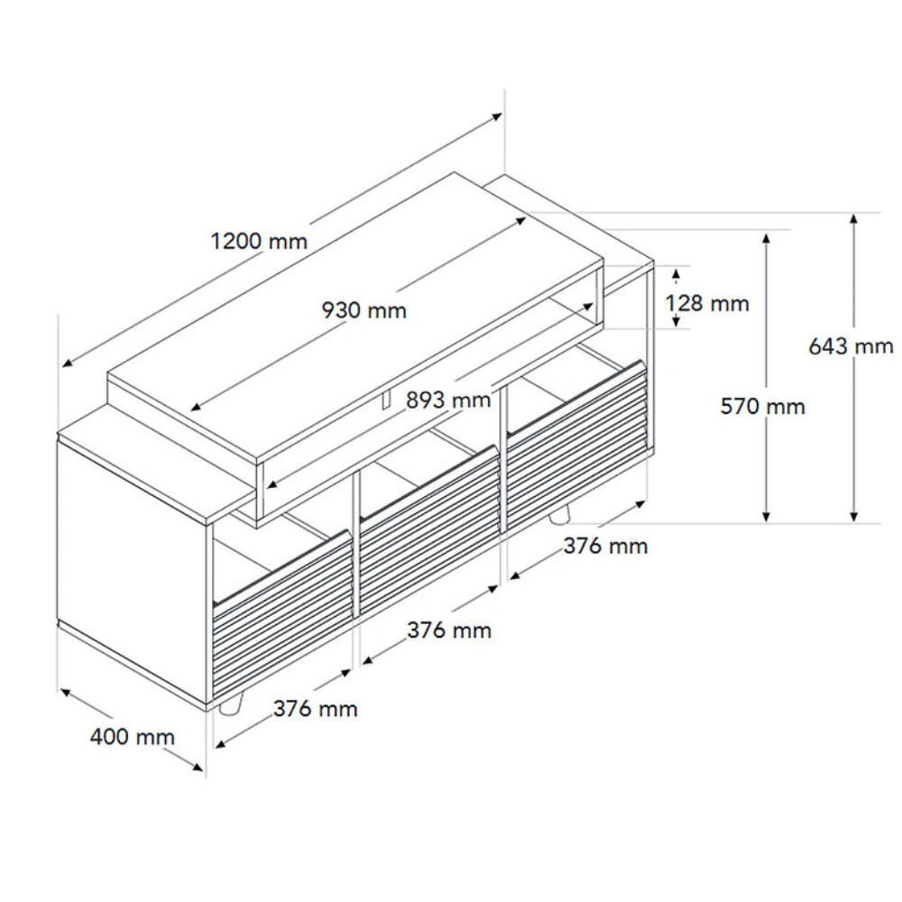 - External dimensions (W x H x D): 1200 x 643 x 400 mm
