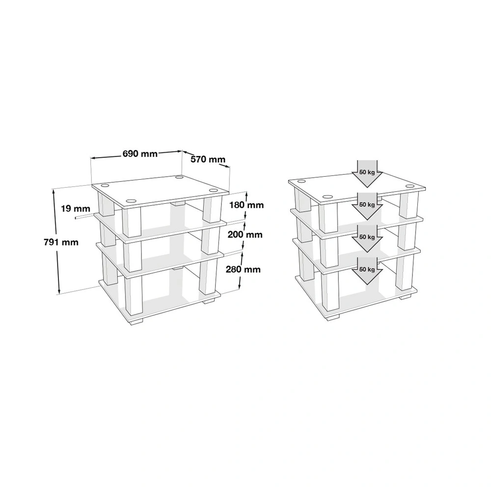 All elements are independent of each other and allow you to change and arrange the furniture as you like. Its highly adaptable and sturdy construction allows you to place devices such as AV receivers, stereo amplifiers, CD and network players, turntables, preamplifiers, DACs, and other home Hi-Fi system components.