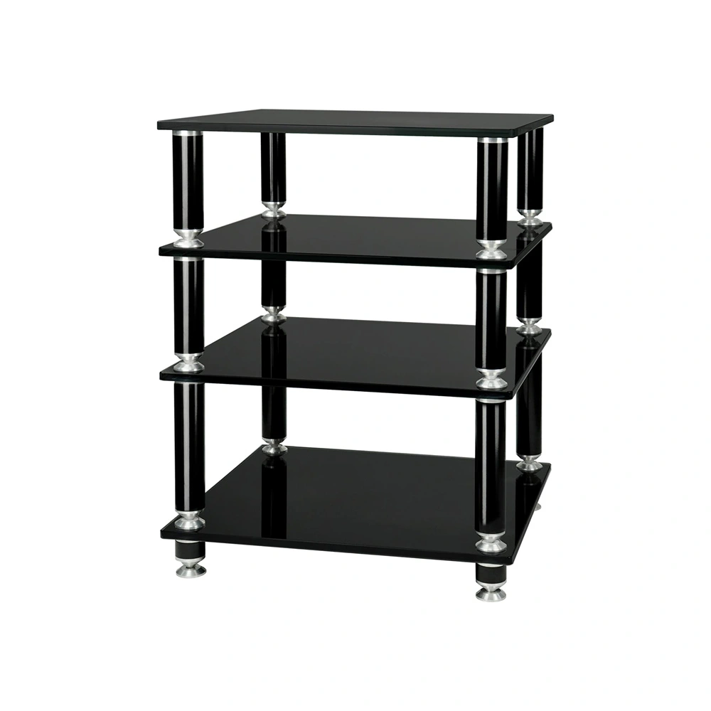 Stand for installing and placing from 3 to 4 audio-video components. Four shelves made of tempered, safe glass 15 mm thick. Distance between shelves 200 mm. Maximum load on shelves, 50 kg. Stabbl HiFi stand is ideal for audiophiles. Stabbl HiFi stand is sturdy and functional. The Stabbl HiFi stand has unique technical attributes with a wave absorption system that supports each of the 15 mm thick shelves.