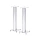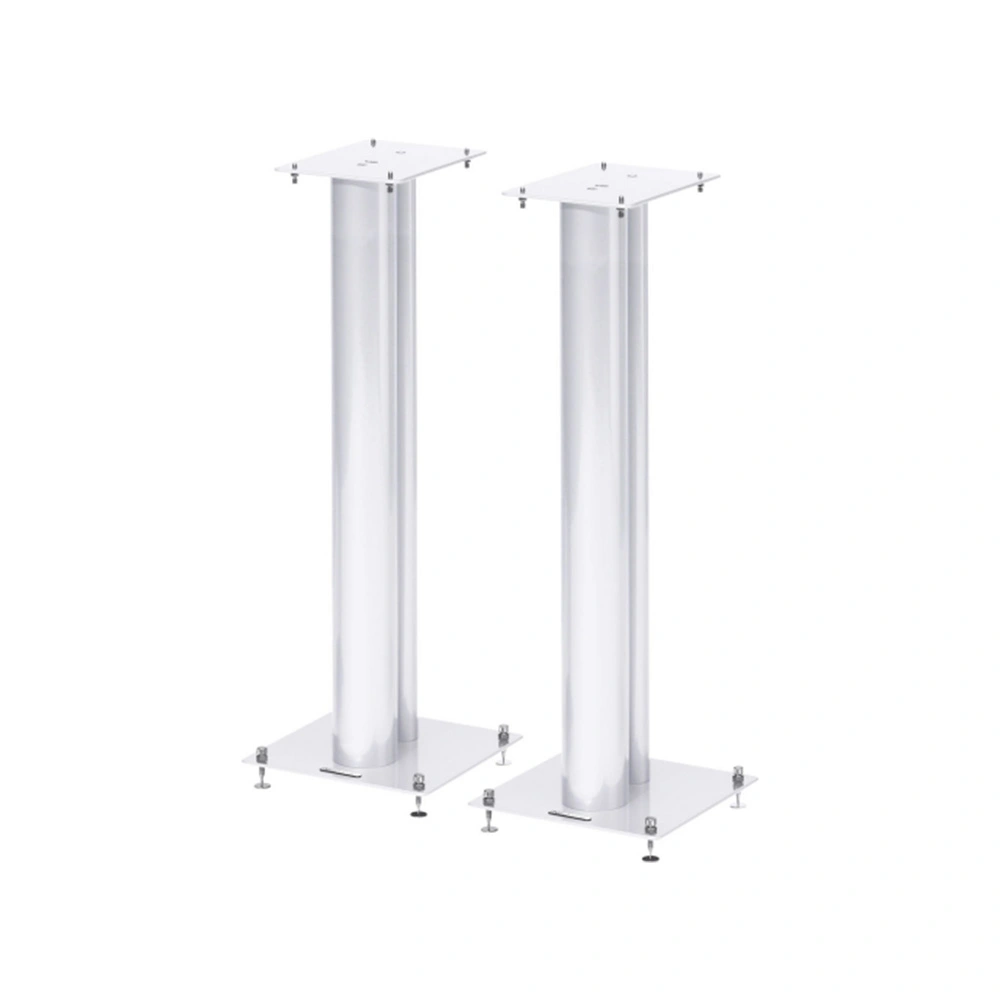 To conceal the speaker cable, a hollow cylindrical foot of the stand is used. It can also serve as a capacity for sand if additional weight support is needed. The stands are available in three finish options: silver, white, and black lacquer.