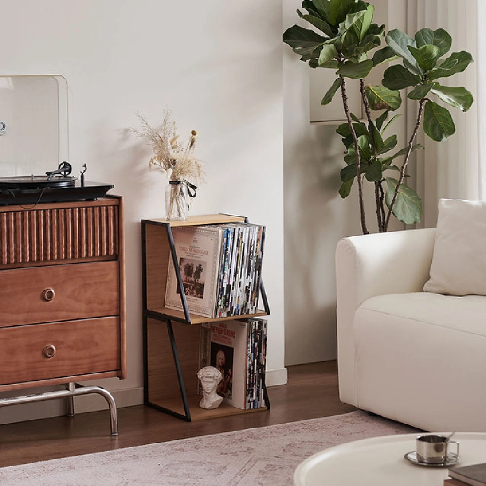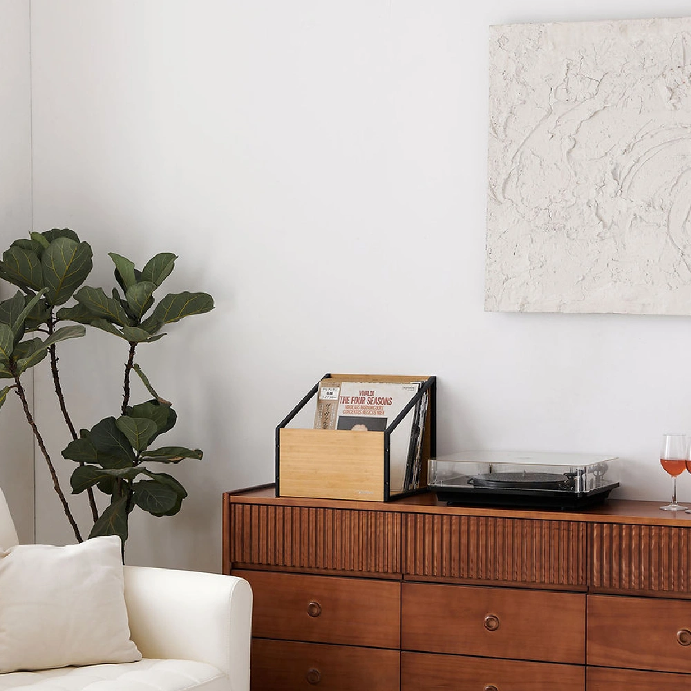 Whether as a record store-style crate or as a sleek shelf, it adapts to all your desires.
