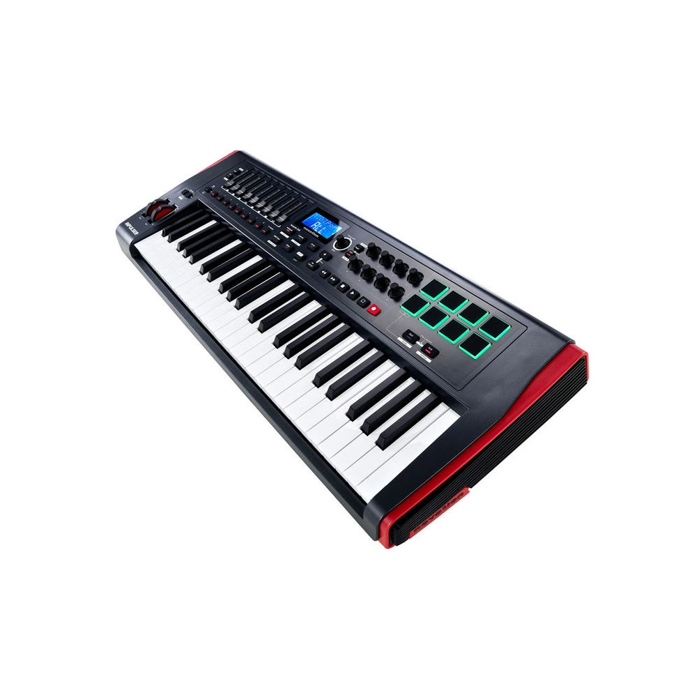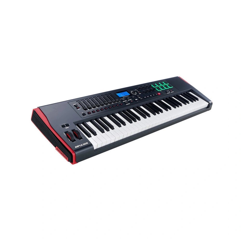 NOVATION IMPULSE 61 is a super-responsive, expressive 61-key MIDI keyboard designed for true musicians, with a clear, fully assignable control interface that integrates perfectly with Ableton Live, Apple Logic Pro, Avid Pro Tools, and other popular audio software. It features a full-size, semi-weighted keyboard with velocity-sensitive keys and inputs for sustain and expression pedals. The High Rate Scan (HRS) technology scans the keyboard 10,000 times per second to accurately capture the smallest nuances of your playing.