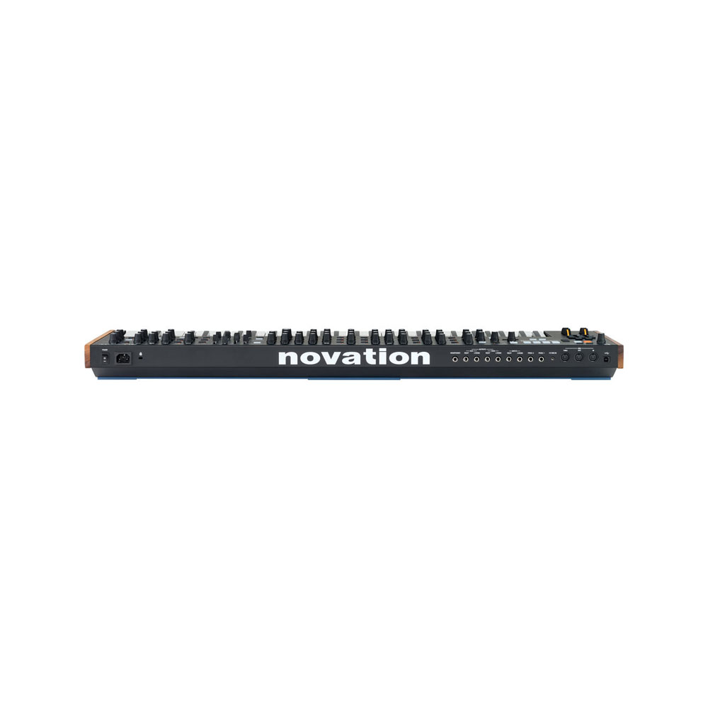 The Novation Summit is a 16-voice synthesizer based on the Peak model. The synthesizer features a multitimbral dual engine and offers subtractive, FM, and wavetable sound synthesis types. Summit doubles the capabilities of the Peak, equipped with the same digitally controlled Oxford oscillators but supporting up to 16 voices that can be distributed across 2 independent engines. They can be split across the keyboard or layered on top of each other, and can also operate in bi-timbral mode. Each instrument voice supports up to three oscillators operating in analog emulation mode.