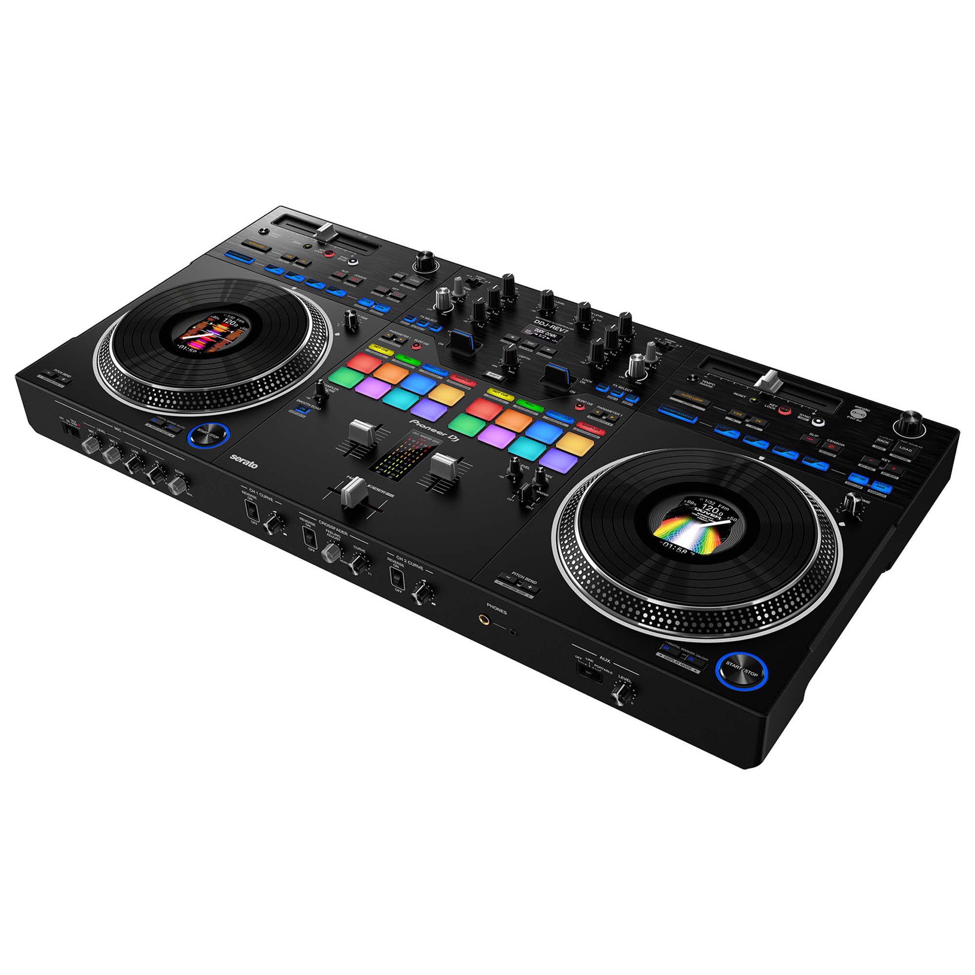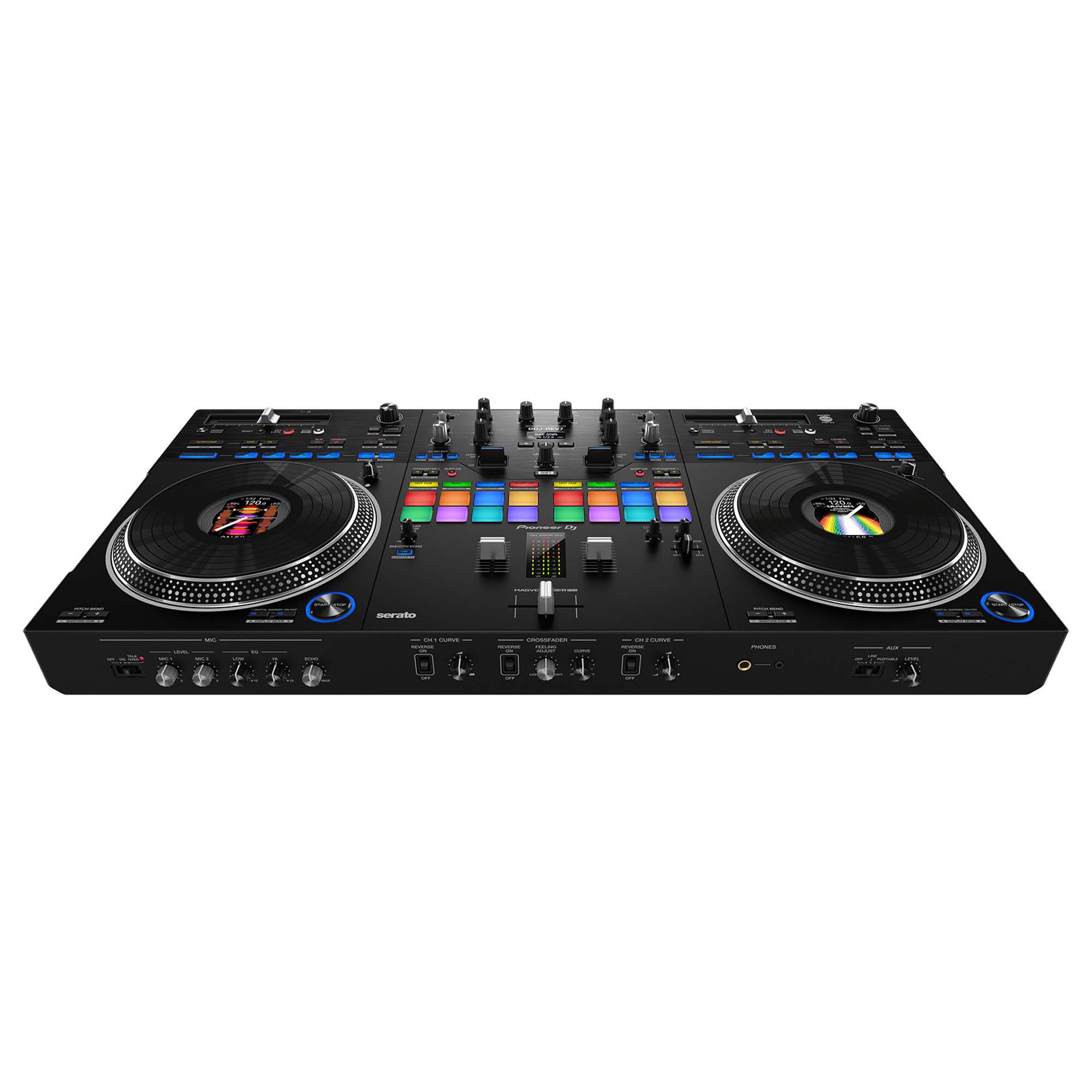 The Pioneer DDJ-REV7 model is designed to maximize the potential of the Serato DJ Pro software. The controller features a completely new design, including large jog wheels with electric drive and displays to provide tactile connection between you and the music. The layout of this 2-channel controller recreates the DJM-S mixer module + PLX turntable with special open-format and scratching functions for DJs.