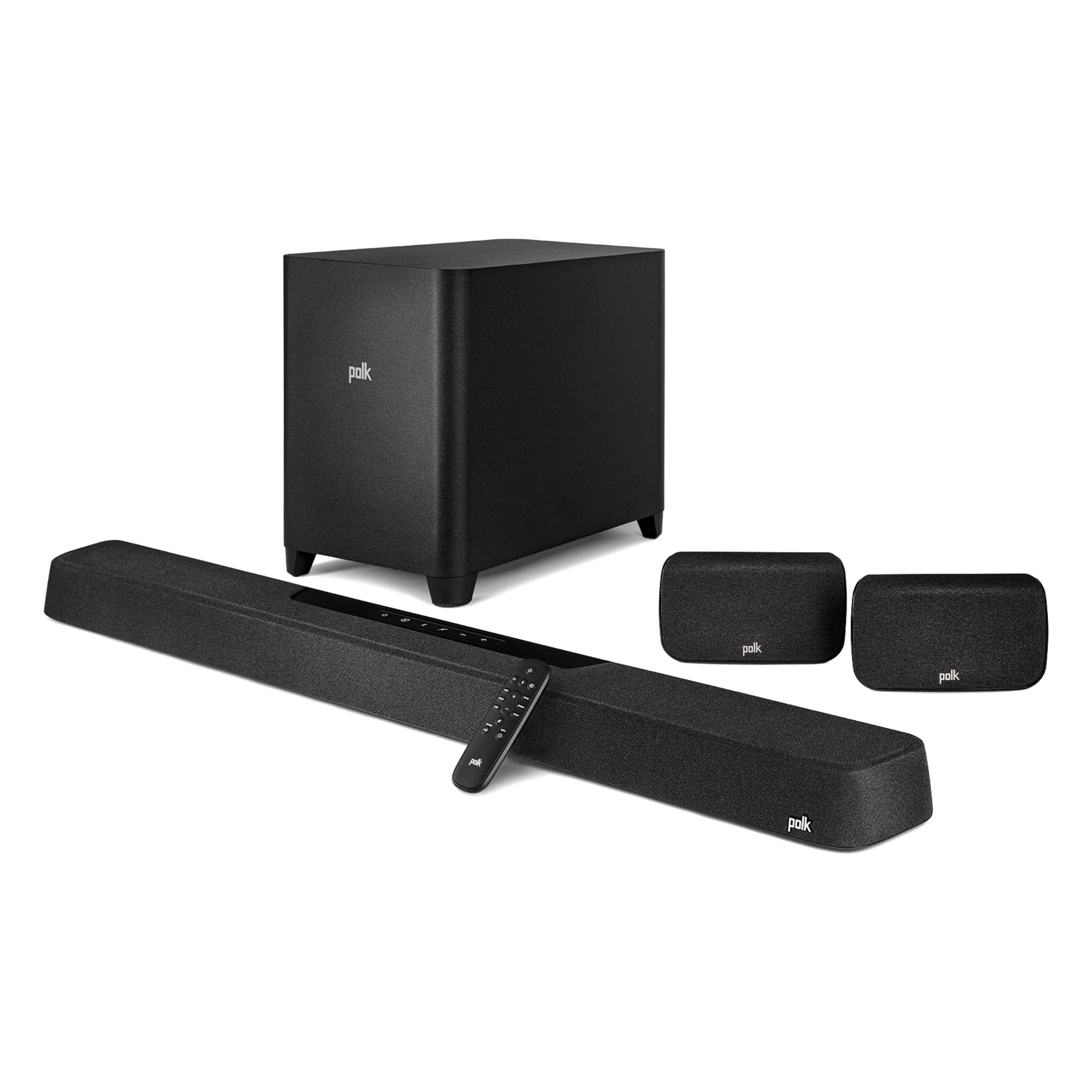 Eleven drivers, a powerful wireless subwoofer, and SR1 wireless speakers create multidimensional, immersive sound with presence effects using Dolby Digital 7.1.2, DTS systems, and Polk SDA surround sound technology.