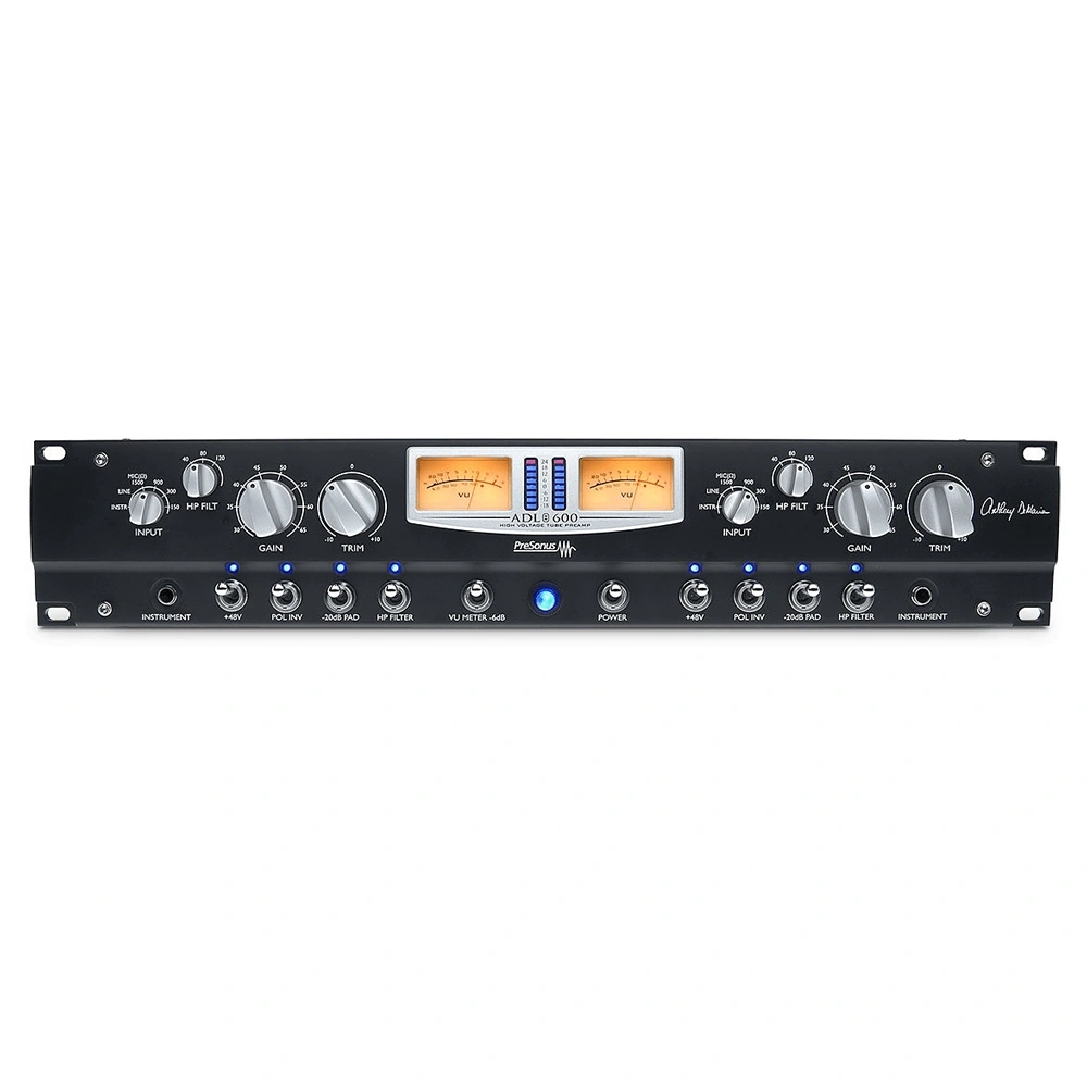 The ADL 600 from Presonus is a two-channel, high voltage tube microphone preamplifier designed by Anthony DeMaria. The unit is a Class A discrete design with three military-grade vacuum tubes per channel, operating at voltages of +/-300V power rails for maximum tube tonality and headroom. The unit was designed for the ultimate in sonic performance, ease of use and input flexibility.