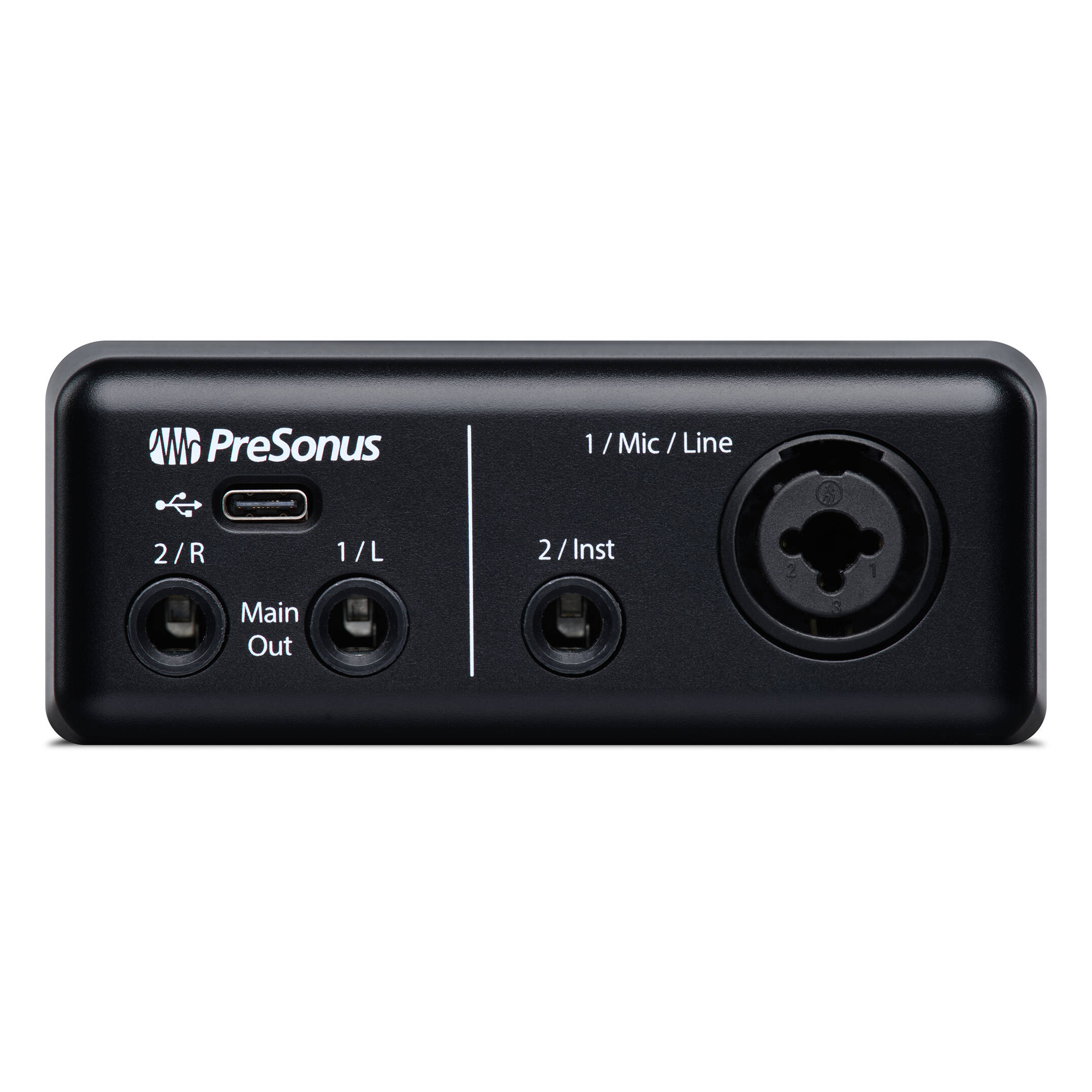 For Individual Creators at Home or on the Go. A highly portable and affordable solution for singers, musicians, and podcasters recording at home or on the go, the PreSonus AudioBox GO ultracompact USB-C audio interface offers a clean Class-A mic preamp with phantom power, a 1/4" input for electric guitar/bass, and simple operability, in a bus-powered, travel-friendly format. The AudioBox GO utilizes high-resolution converters to ensure signal integrity and detail, whether recording or mixing. With two 1/4" monitor outs and a stereo headphone output, the interface can drive a set of speakers and headphones while offering independent volume controls for both.