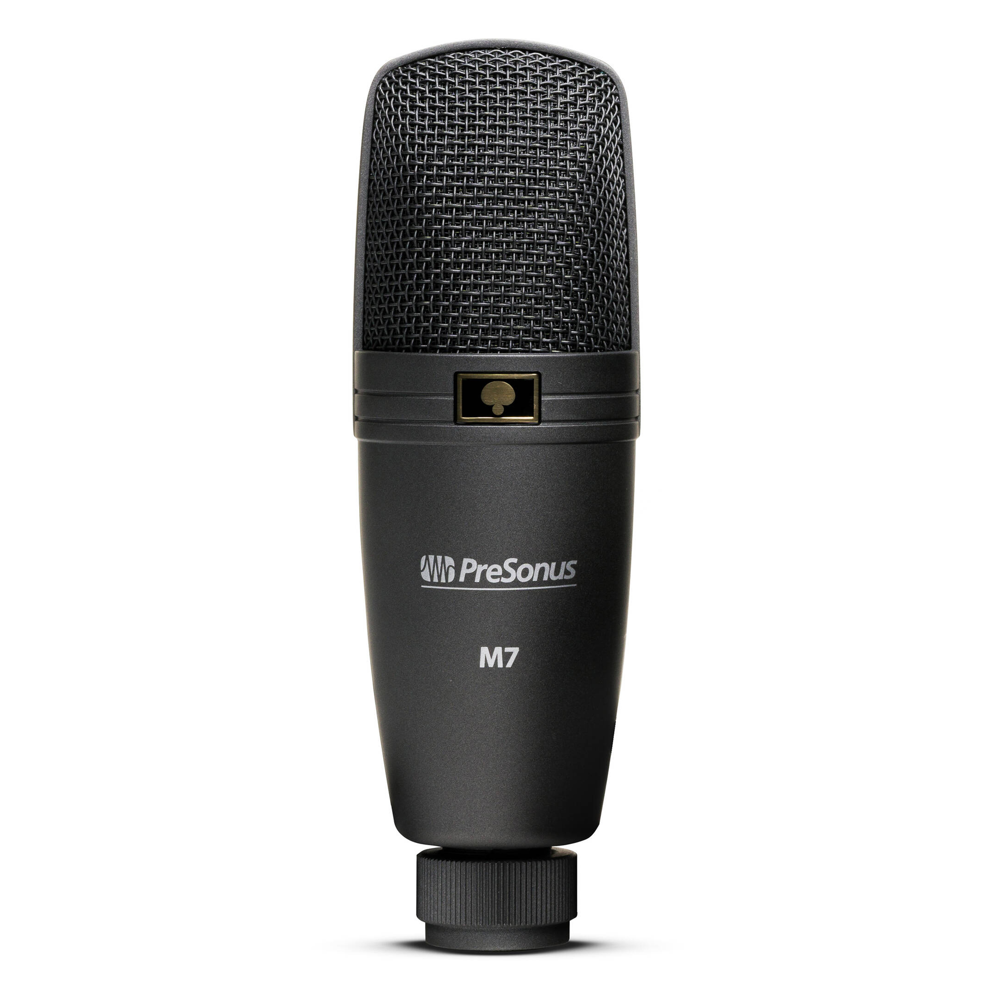 A straightforward, no-frills microphone designed for quality capture of vocals, speech, and various instruments, the PreSonus M7 offers a warm sound with smooth highs at a highly accessible price point for musicians, podcasters, and content creators on a scaled-down budget. The M7 mic utilizes a sensitive electret condenser to produce a strong output signal and a wide frequency response of 30 Hz to 18 kHz.