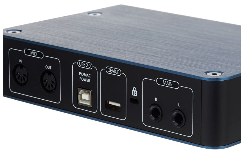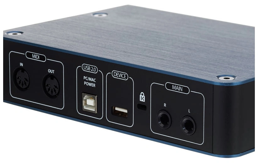 Finally, one of the features of this audio interface is the proprietary iPad recorder called Capture Duo. You can transfer sound from the sequencer for processing on the tablet, and then transfer it back to the computer in Studio One - thus achieving even greater mobility. To connect, a USB cable is used, which connects via the USB to the MFi (Made for iOS) output, and the second proprietary cable to the iPad. The main connection is made using a standard USB cable with a type B connector. But you are not limited to the bundled software: this audio interface works with any recording software that supports Core Audio protocols (Mac) or ASIO (Windows).