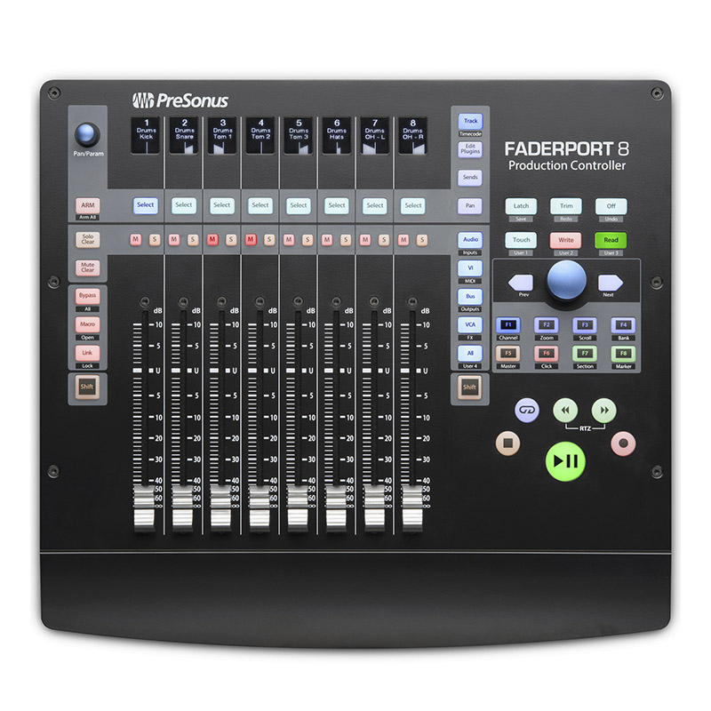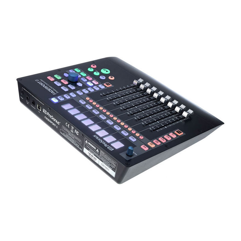 FaderPort 8 is a compact and easy-to-use DAW controller. It features 8 touch-sensitive motorized faders with smooth operation, 8 high-resolution Scribble Strip miniature displays, and 57 backlit buttons. These buttons allow for control of 78 different functions. FaderPort 8 is tightly integrated with Studio One®. However, with support for HUI and Mackie Control protocols, it can also interact with other DAWs.