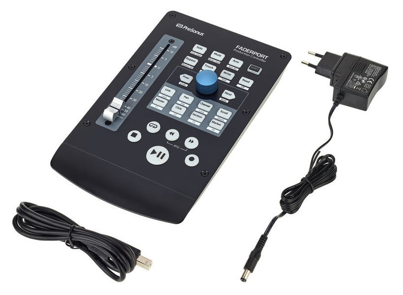 The PreSonus FaderPort V2 is a professional MIDI controller designed to control DAW functionality, audio recording, and mixing software. It supports HUI and Mackie protocols, ensuring compatibility with programs such as Pro Tools, Logic Pro, Ableton Live, Sonar, Studio One, and Cubase. It works correctly on both Windows and macOS operating systems.