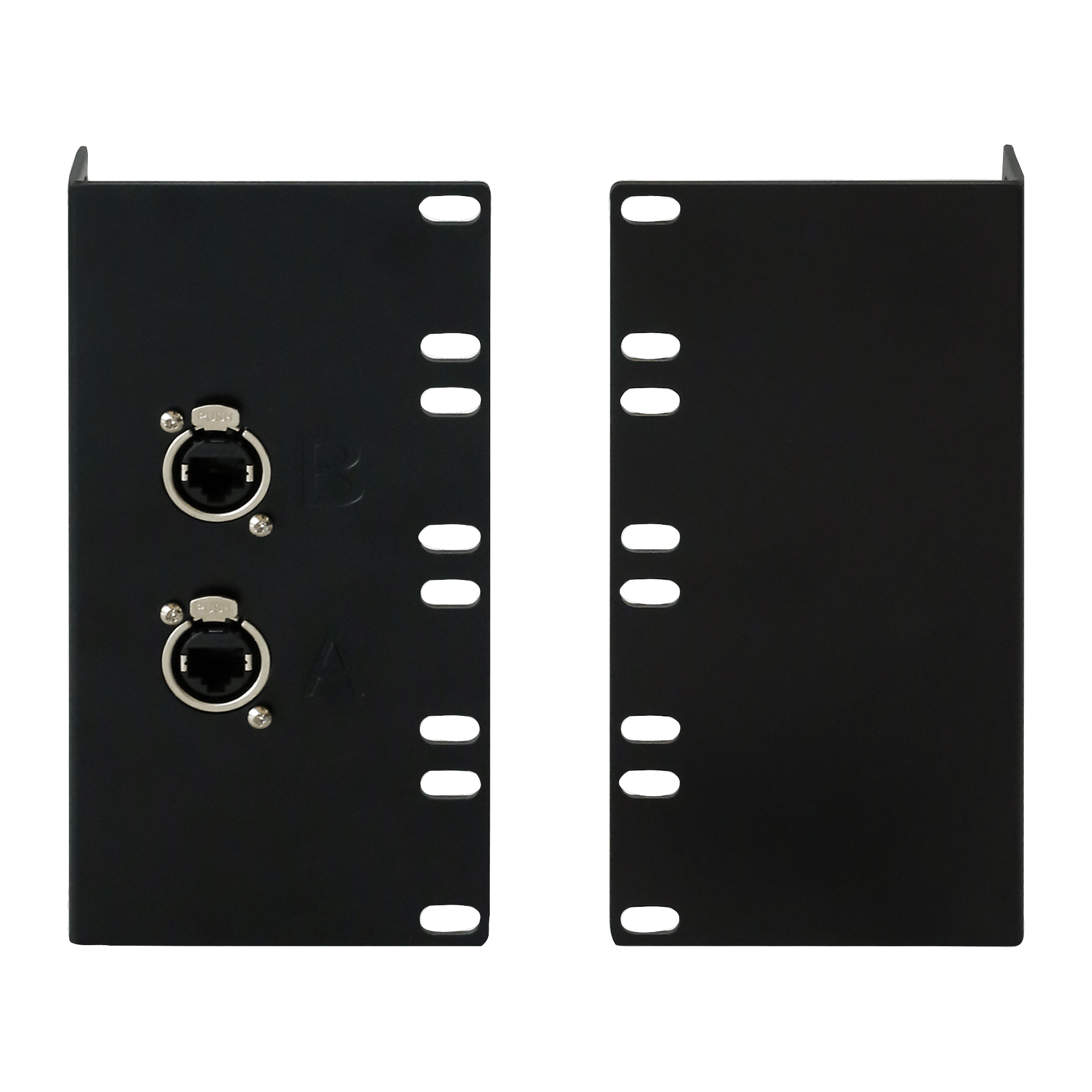 The PreSonus NSB 8.8 Rackmount Kit allows you to install your NSB 8.8 AVB network stagebox into a standard 19" rack mount enclosure. The kit includes two blank panels, two Ethernet cables, and mounting screws. One panel features two Ethercon jacks, which once connected with the included Ethernet cables, provides access to the AVB network ports from the front panel.