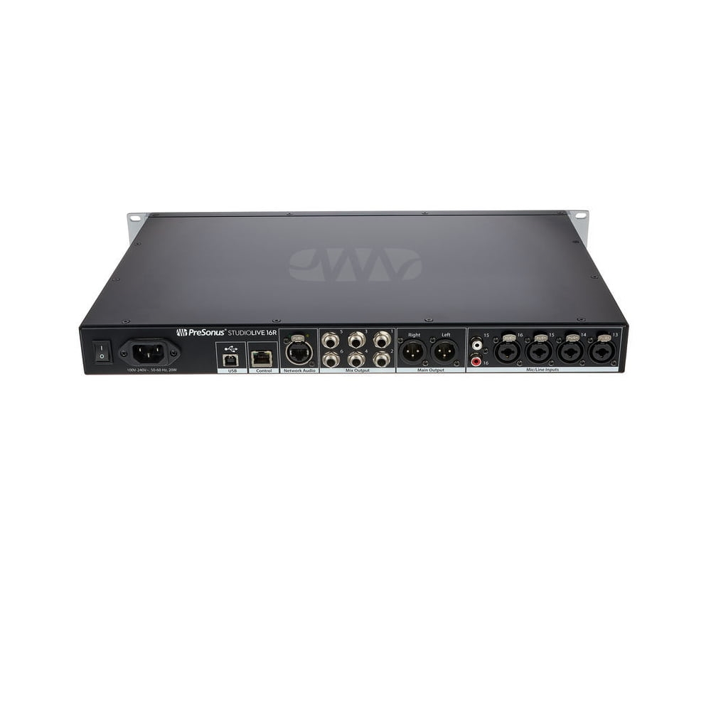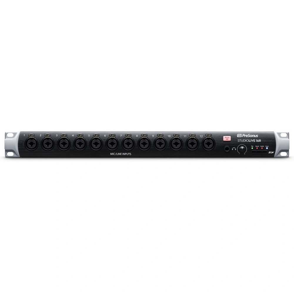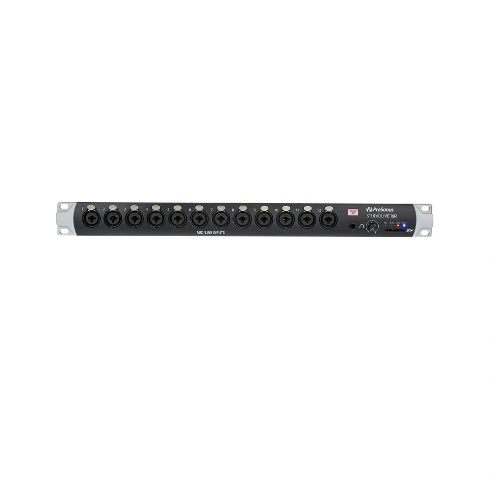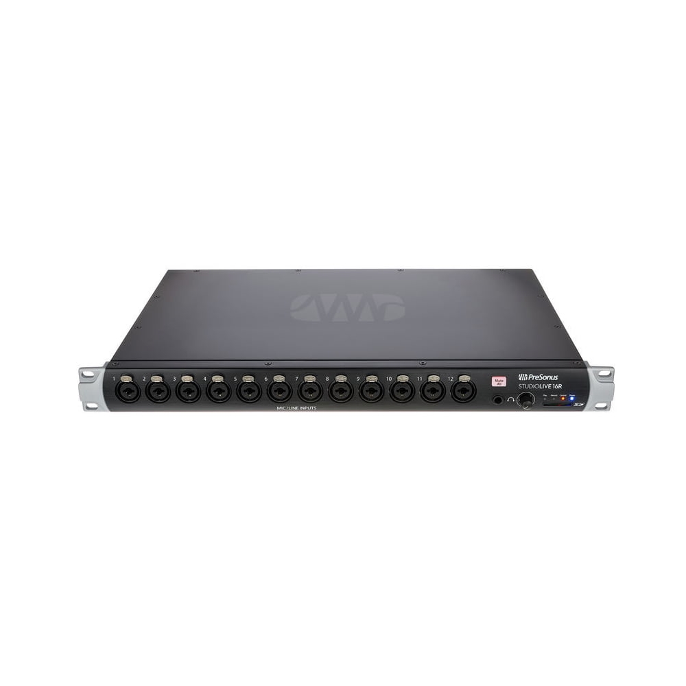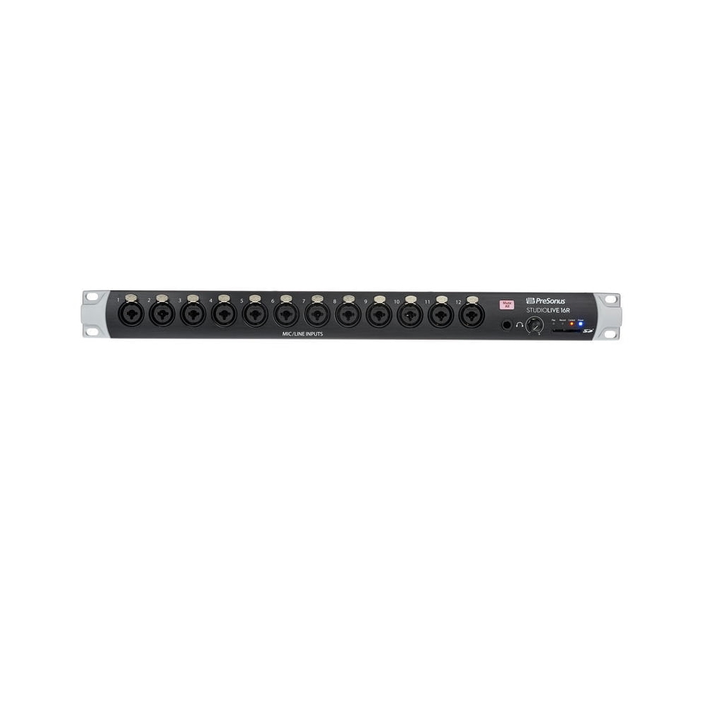 The PreSonus StudioLive 16R is a versatile mixing console suitable for various installations: standalone operation as a rack mixer, complement to a StudioLive Series III mixing console, or functioning as a stage box. The device's 1U standard enclosure allows for easy installation in a rack module.