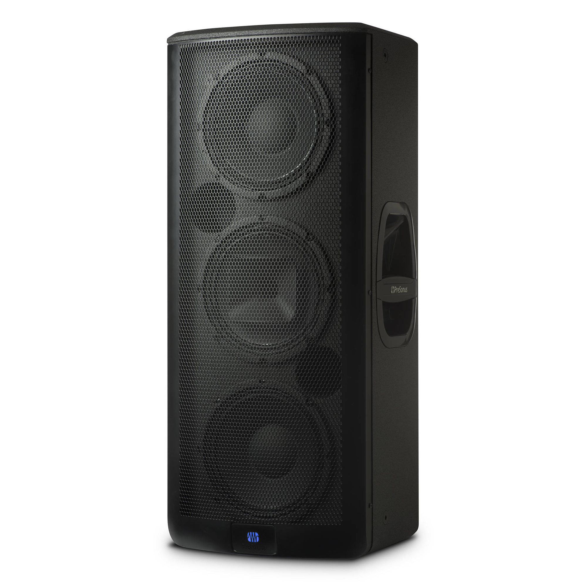 The PreSonus 328AI Three-Way 2,000W Powered Dual 8" Loudspeaker with Active Integration is a compact PA enclosure with full-range sound and performance. It features dual 8" ferrite woofers for low frequencies and a custom-designed 8" coaxial speaker with a 1.75" titanium compression driver. These transducers are driven by 2,000W RMS of triamplified, Class D power.