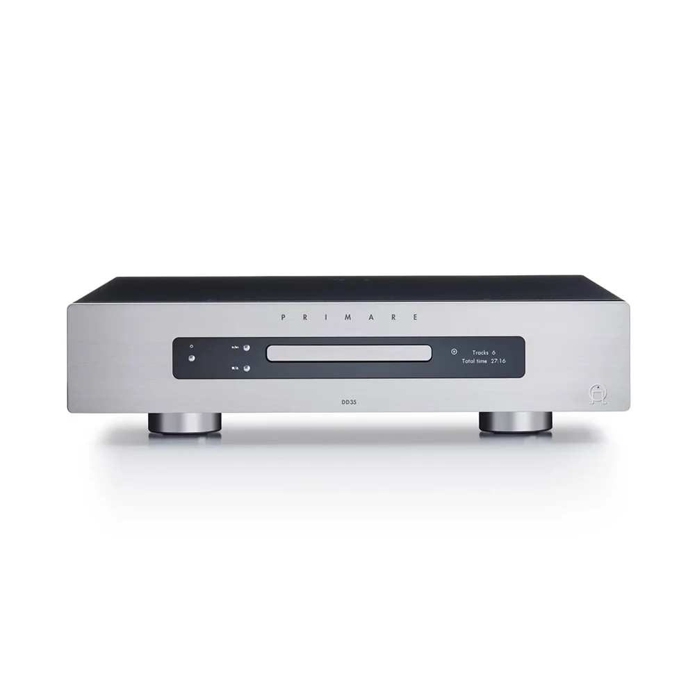 The chassis made of thick sheet steel is designed to shield the Primare DD35 and protect it from external vibrations. The contrast-colored buttons protrude from the surface just enough so that the facade does not get dirty when pressed. The display is not fluorescent, as it may seem at first glance, but matrix, similar to those installed in mobile phones, therefore it has high informativeness and a pleasant indication for the eyes.