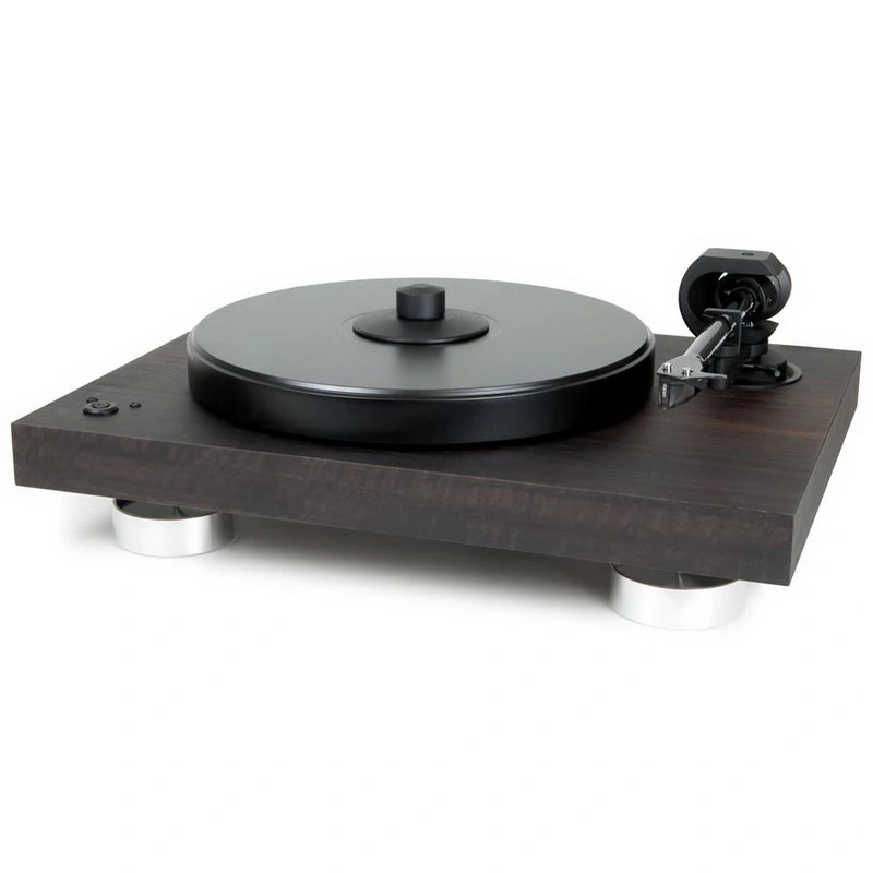 The audio perfor-mance of the final product benefits from the resonance-free platter, avoiding the ringing effect of common metal and glass platters. The 2Xperience SB DC is not only equipped with a highend tonearm, but comes with a pre-fitted Ortofon 2M Silver magnetic cartridge that makes use of silver voice coils. An acrylic dust cover is also included. While audio electronics are often hidden and controlled by phone or tablet apps, the analog record player again is put in scene as the center of a hifi system and proudly presented like high-quality speakers. The new satin real wood turntable surfaces seamlessly fit the latest furniture trends (eucalyptus, walnut, palisander), additionally three classic high-gloss finishes (black lacquer, mahogany, olive) are available.