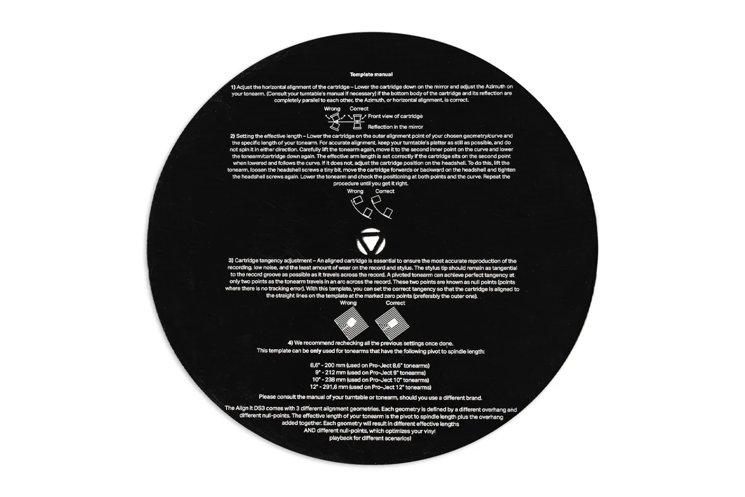 Align it DS3 is one of the easiest yet most effective alignment tools available. With it you can adjust and align your cartridges with ease. It comes with detailed instructions and background knowledge to equip you with all the information you need to maximise your vinyl playback.