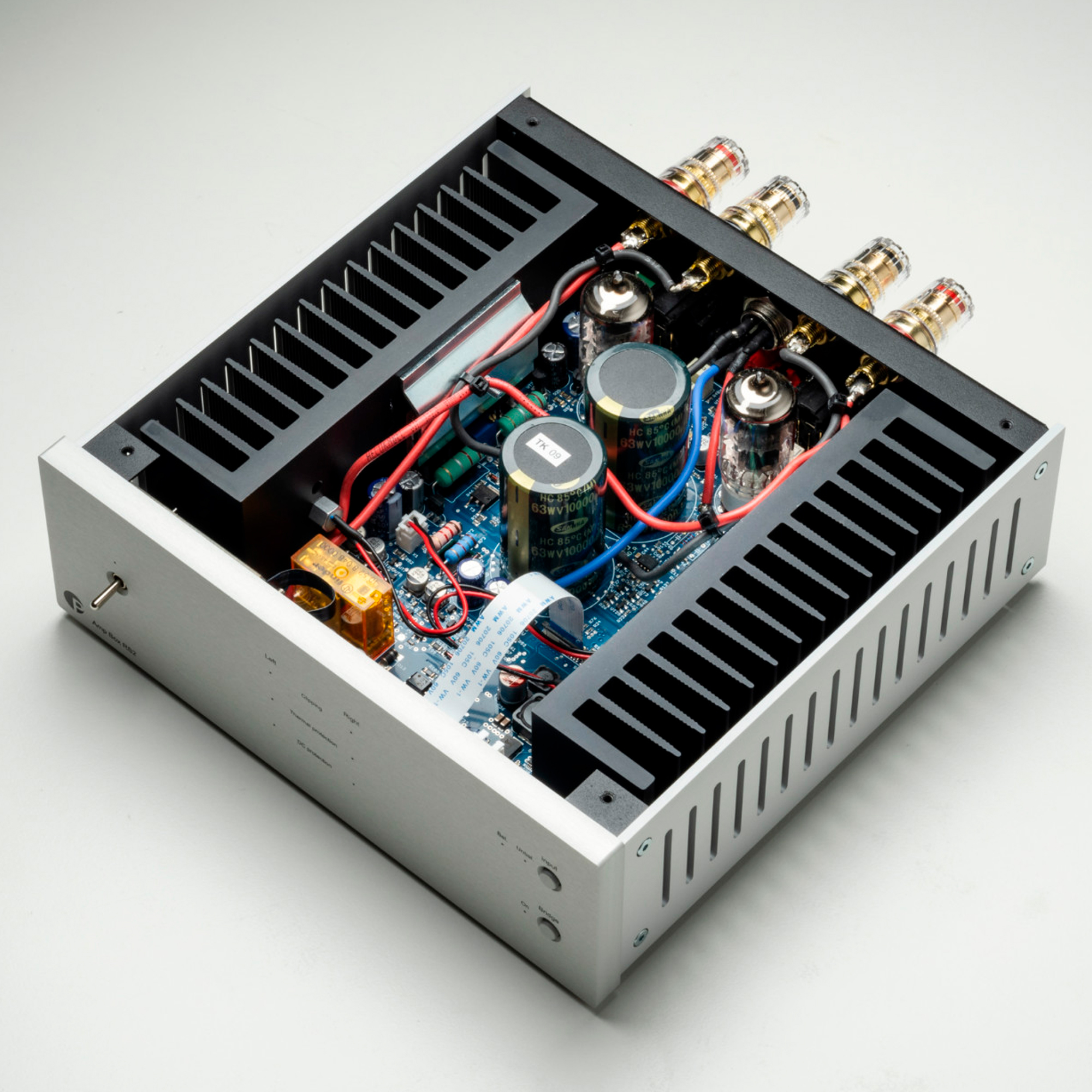 The impeccably crafted metal housing not only looks attractive but also serves to efficiently dissipate heat from the amplifier's circuit.