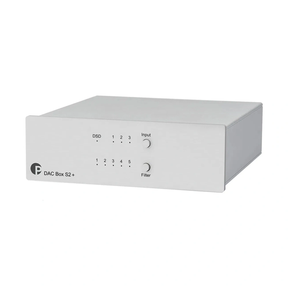 The Pro-Ject DAC Box S2+ is a digital-to-analog converter that meets modern standards and requirements. It supports playback of PCM files up to 32-bit/768 kHz and DSD up to 256 MHz. The device offers five switchable digital filters to customize the sound based on user preferences.
