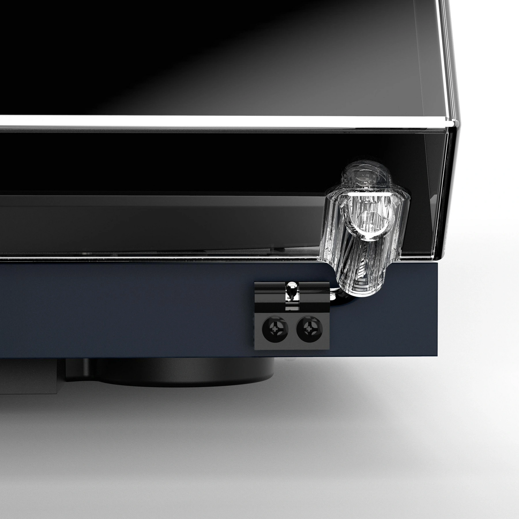 The heavy and durable MDF chassis of the Pro-Ject Debut Carbon EVO turntable can have one of nine different finishes, chosen according to customer preferences. Now, in addition to glossy finishes, matte finishes are also available. Furthermore, the Pro-Ject Debut Carbon EVO is equipped with three height-adjustable metal feet, making it easier to level the turntable on any surface. Another important addition to the new model is the electronic speed switch for record rotation (33/45 rpm), which was not present in all models of the series before. The corresponding button was decided to be mounted on the underside of the chassis to maintain the turntable's sleek design.
