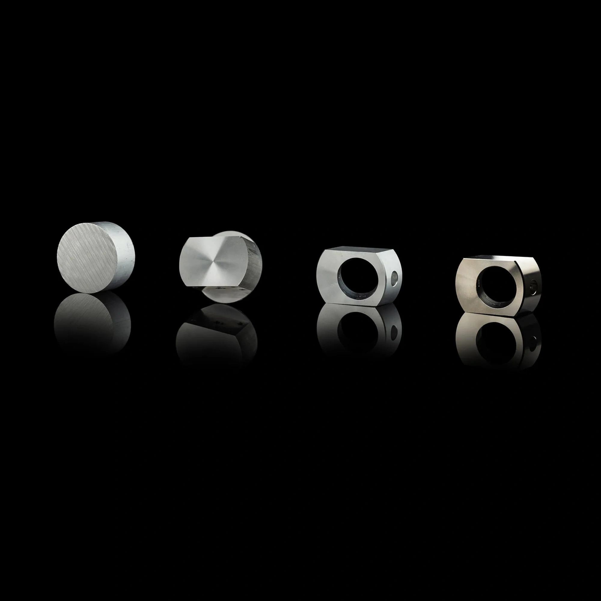 The tonearm bearing is a completely new design. Precision CNC'd out of a single block of aluminium, you can see all the production stages above. The last step is putting a nickel finish on it. This will increase the rigidity of the bearing, ensuring free and fluid movement of the tonearm and precise tracking without material degration in looks or function.