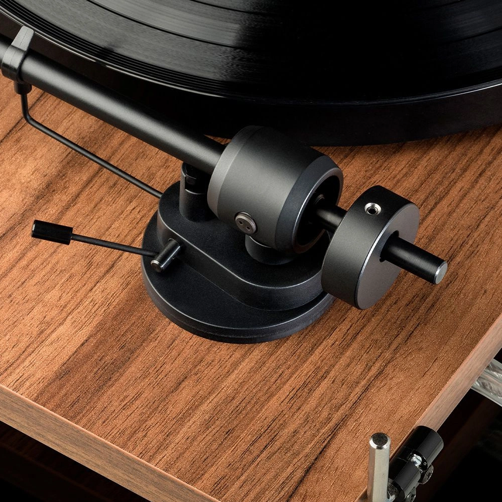 The stylish composite fiber plinth, CNC-machined, is carefully crafted to ensure no internal resonances. The lightweight 8.6-inch aluminum tonearm with low friction is optimized for the high-quality Ortofon OM5e cartridge and fully unleashes its potential.