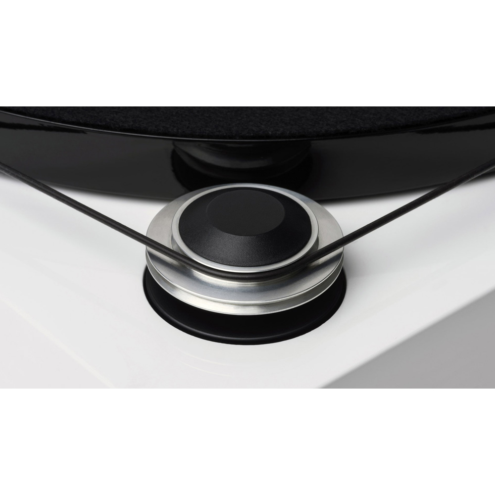 The platter simply slips onto the bearing and a silicone belt is stretched around the platter and over the pulley to drive the turntable. A felt mat is supplied to pop on top of the platter.