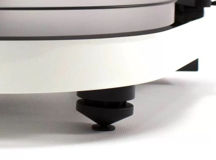 - The turntable is mounted on three adjustable conical feet.