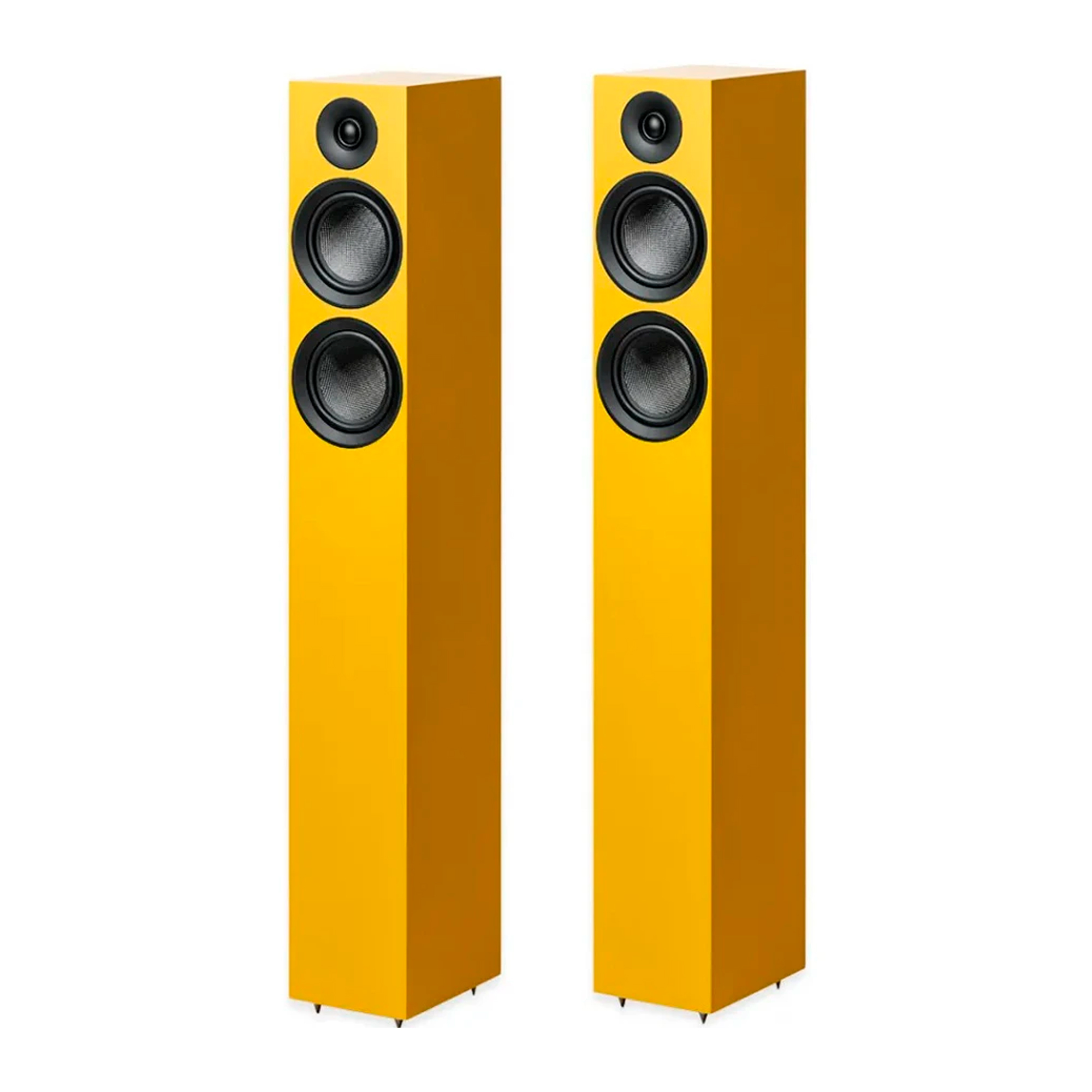 The Pro-Ject Speaker Box 12 E Carbon is a pair of 2.5-way floorstanding speakers with a bass reflex design and carbon fiber woofers. These compact floorstanding speakers deliver rich and detailed sound. Two 6.5-inch woofers produce convincing bass, while the dome tweeter creates airy and expressive sound. The elimination of cabinet vibrations is achieved through an internal chamber filled with ballast (sand).