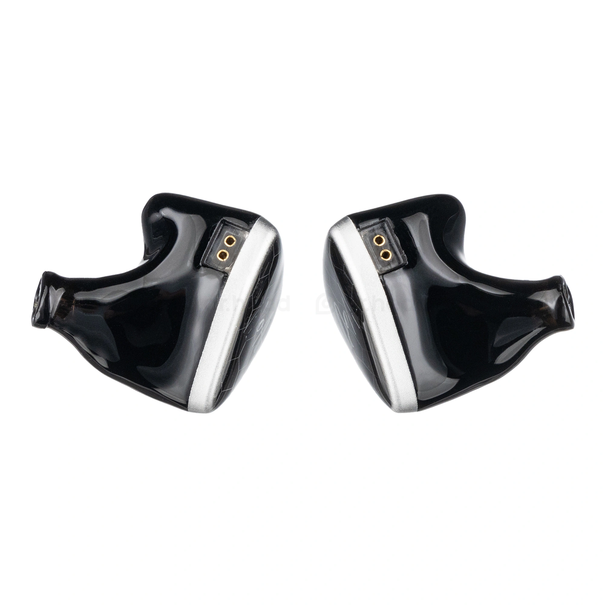 The 7mm dynamic driver with a titanium coating provides powerful and deep bass. The dual electrostatic driver Sonion EST65DA01 offers excellent resolution in the upper range, enhancing the listening experience with a more atmospheric and open sound. This combination results in a smooth sound signature without any frequency dips, seamlessly connecting the bass and high frequencies.
