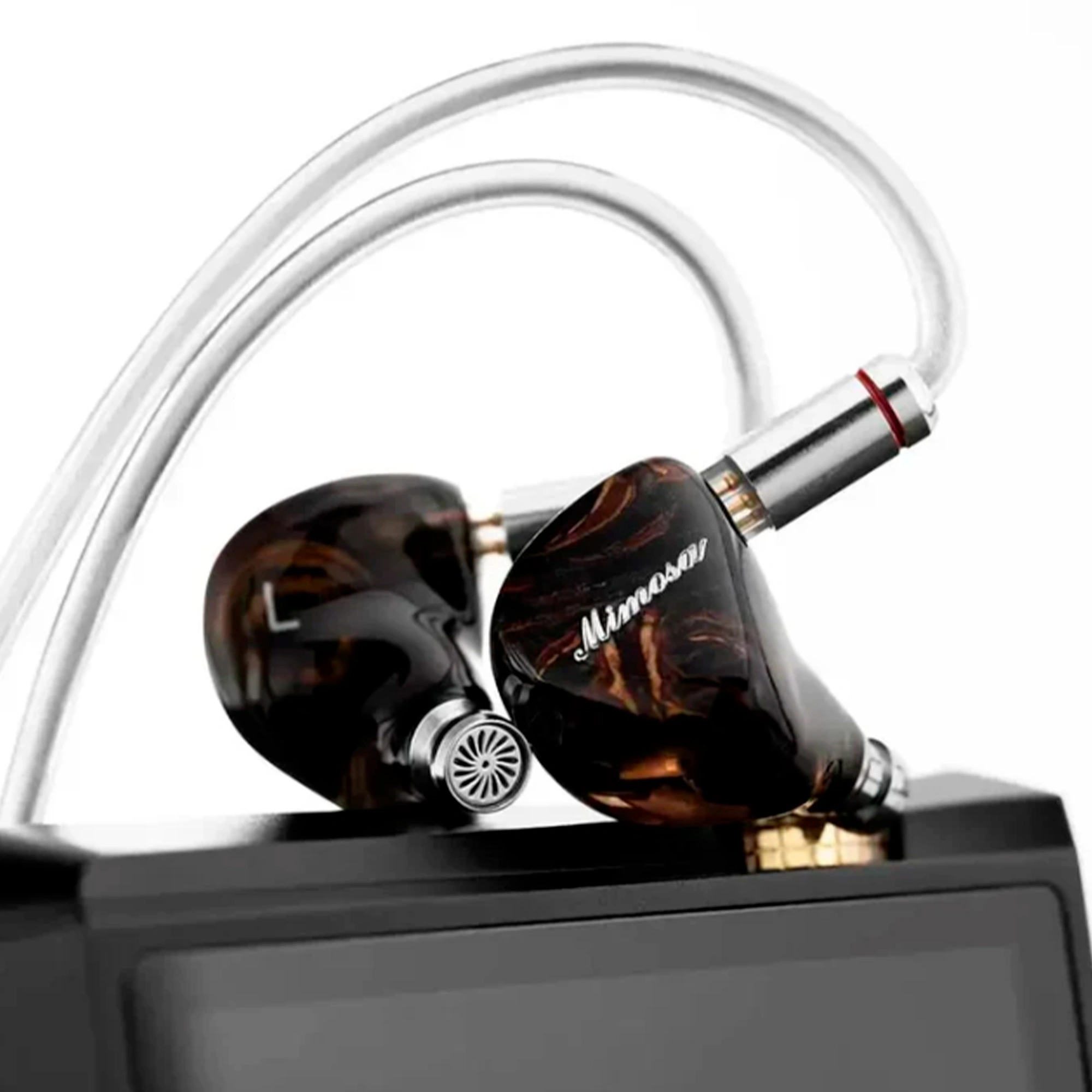 QoA Mimosa 1 DD+1 Planar Hybrid Drivers In-Ear Earphone. Tuning is no different from mixing a cocktail; both require a sense of balance and trade-offs. QoA aims to tune Mimosa into an earphone that appeals to a wide audience, allowing it to win the favor of more music enthusiasts. Design of the Mimosa earphone is also low-key, featuring a black shell paired with a pine cone wood faceplate. It is simple but not cold, stable and natural, exuding an effortless charm that draws people in.