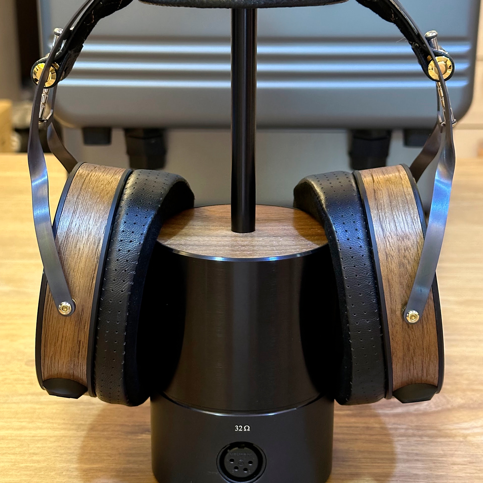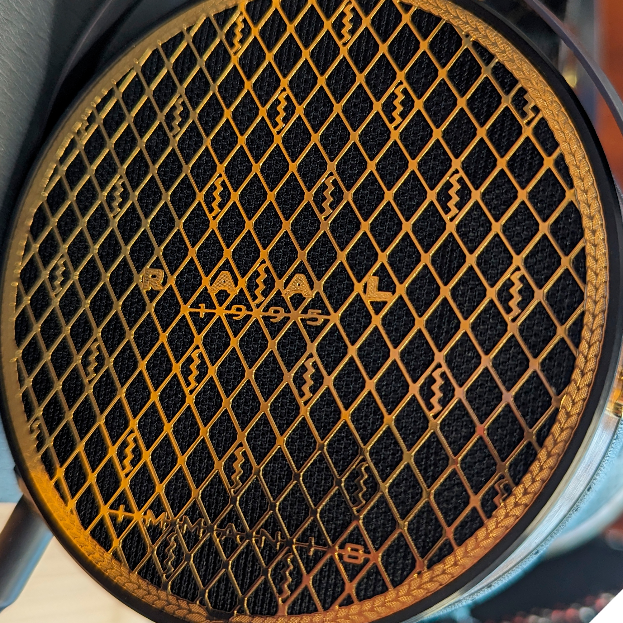 The quality of the headphones is evident in their construction. A blend of fiberglass, aluminum, and a hard wax finish on American walnut veneer is used, accented by an elegant gold-plated grille. Comfort is also a key focus for the Immanis. The full-size headphones feature a suede-lined headband with a stylish diamond pattern and a gold-plated adjuster for easy size changes. Memory foam ear cushions are covered with lamb leather on the inside and perforated leather on the outside.