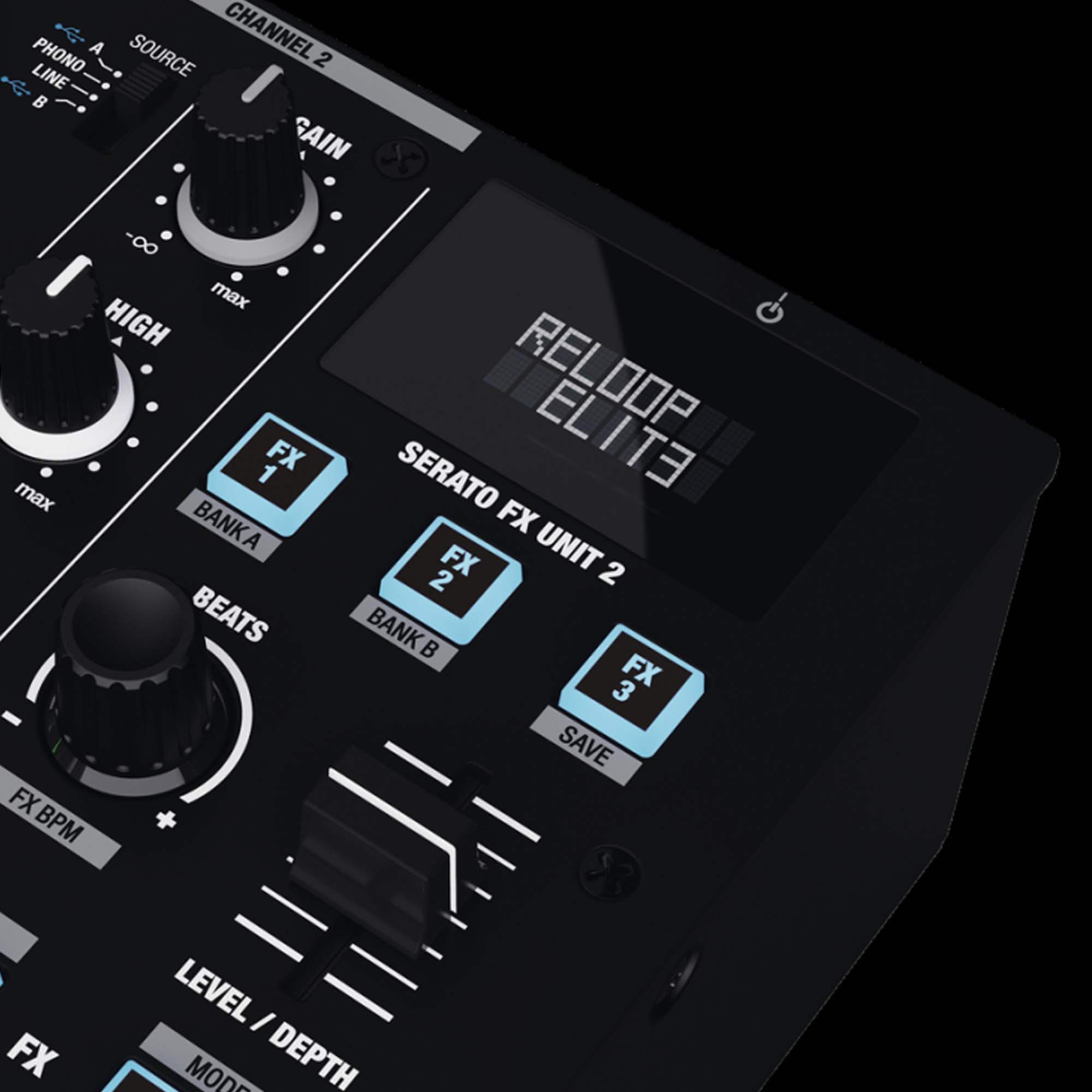Reloop Elite is a professional DVS mixer for Serato DJ Pro, developed in close cooperation with international turntable artists. With a combination of a performance-oriented layout and powerful features, ELITE allows you to fully realize your DJ potential.