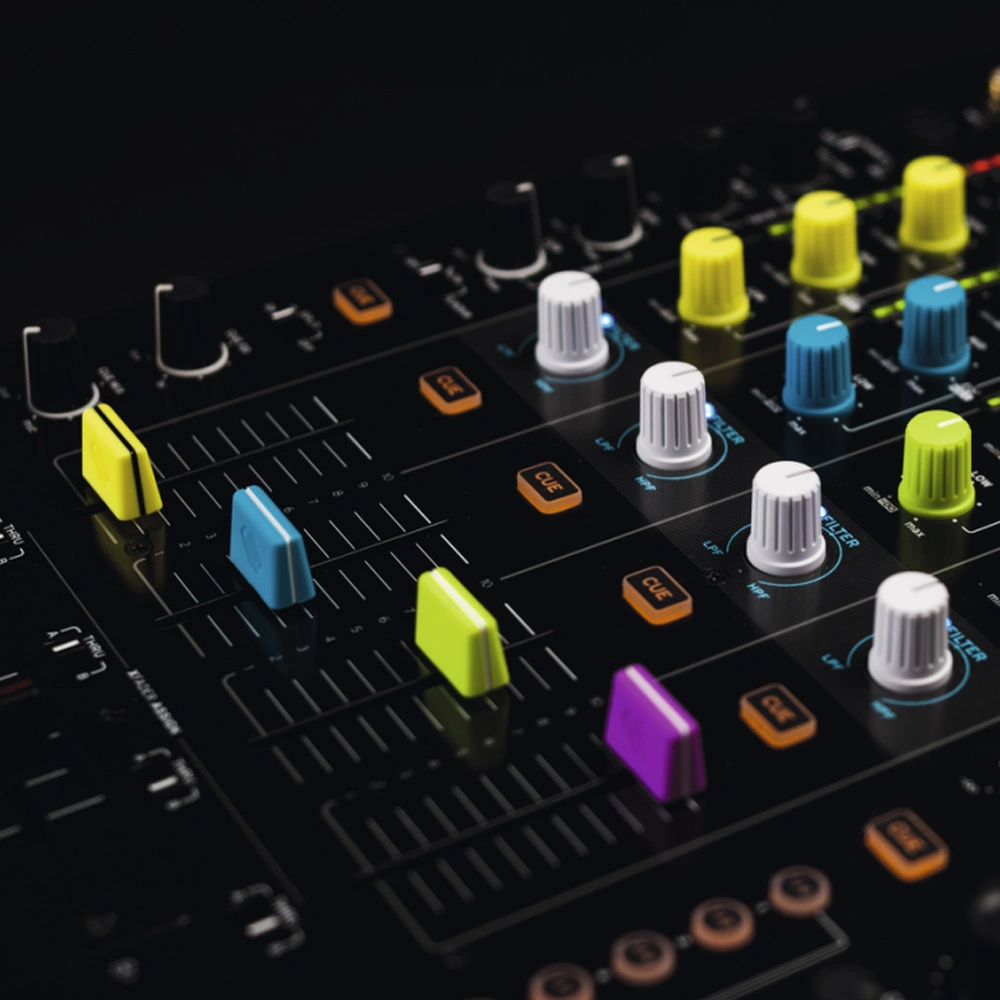 The Reloop Fader Caps bring fresh and bright neon-style colours to your DJ mixer or controller. Simple to install and boasting a rubberised, ergonomic design that can help elevate your performances further, these simple fader caps are a great addition to your set-up. Supplied in packs of 5, they're also perfectly complemented by Reloop's new Knob Caps. Customise your gear and stand out from the crowd.