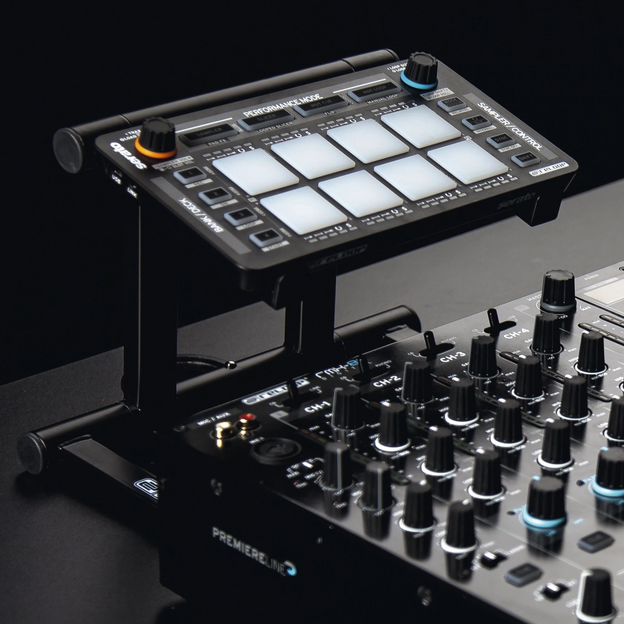 The Reloop Modular Stand was designed to exactly fit the performance pad controller Reloop Neon, guaranteeing solid foothold with ideal working height. Ideally, the Reloop Modular Stand is positioned near a turntable, allowing comfortable access to the sample, cue, loop and effect sections. Thanks to convenient snap-in knobs, the Reloop Modular Stand's setup is quick and easy. The stand is also compatible with other modular controllers, effect devices or even the iPad and it can also be used in the studio, in order to position your desktop synthesizer or drum machine at an ideal working height.