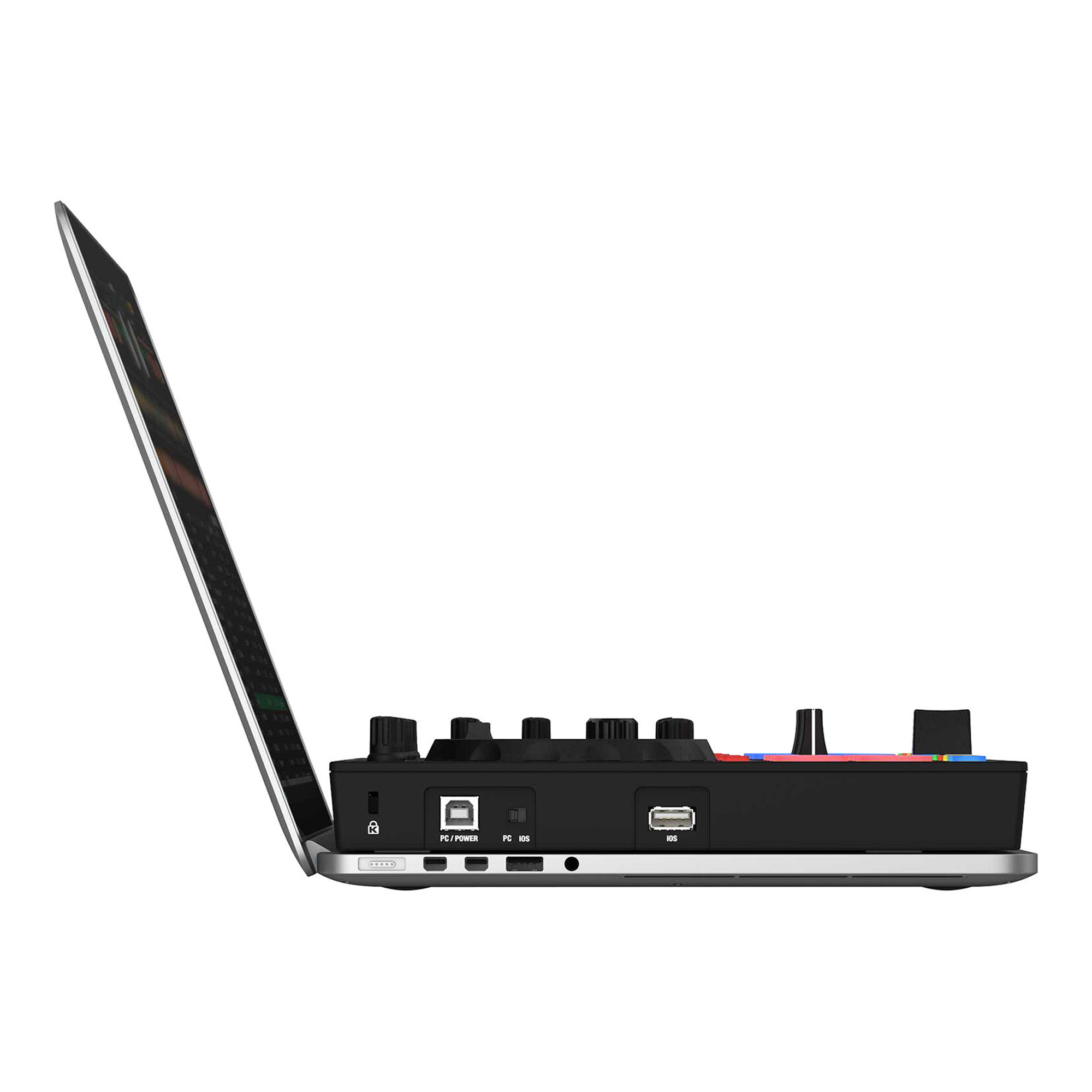 Not only is the Reloop Ready fully USB bus powered, it also boasts a full headphones cue section and 3.5 mm jack, together with an RCA out port for direct connection to active speakers and sound systems. And for those who are conscious of saving space and even working on DJ sets while travelling, the Reloop Ready's innovative and sturdy design allows the unit to sit comfortably above your laptop keyboard while in use, keeping the overall footprint of your setup to a satisfying minimum.