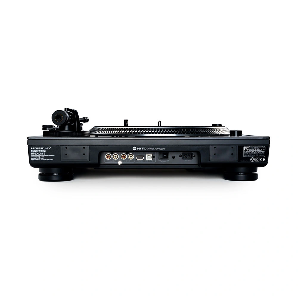 The USB-B port is used to output the digital signal from the turntable, for example, to the Reloop Elite DJ mixer. Compatibility with Serato DJ software for Windows and macOS platforms is supported. The built-in phono preamp allows for the output of an analog audio signal, with the output provided by an RCA connector with a separate contact for grounding. The front panel is covered with high-quality scratch-resistant paint, and there are damping feet for stable positioning of the device on the table.