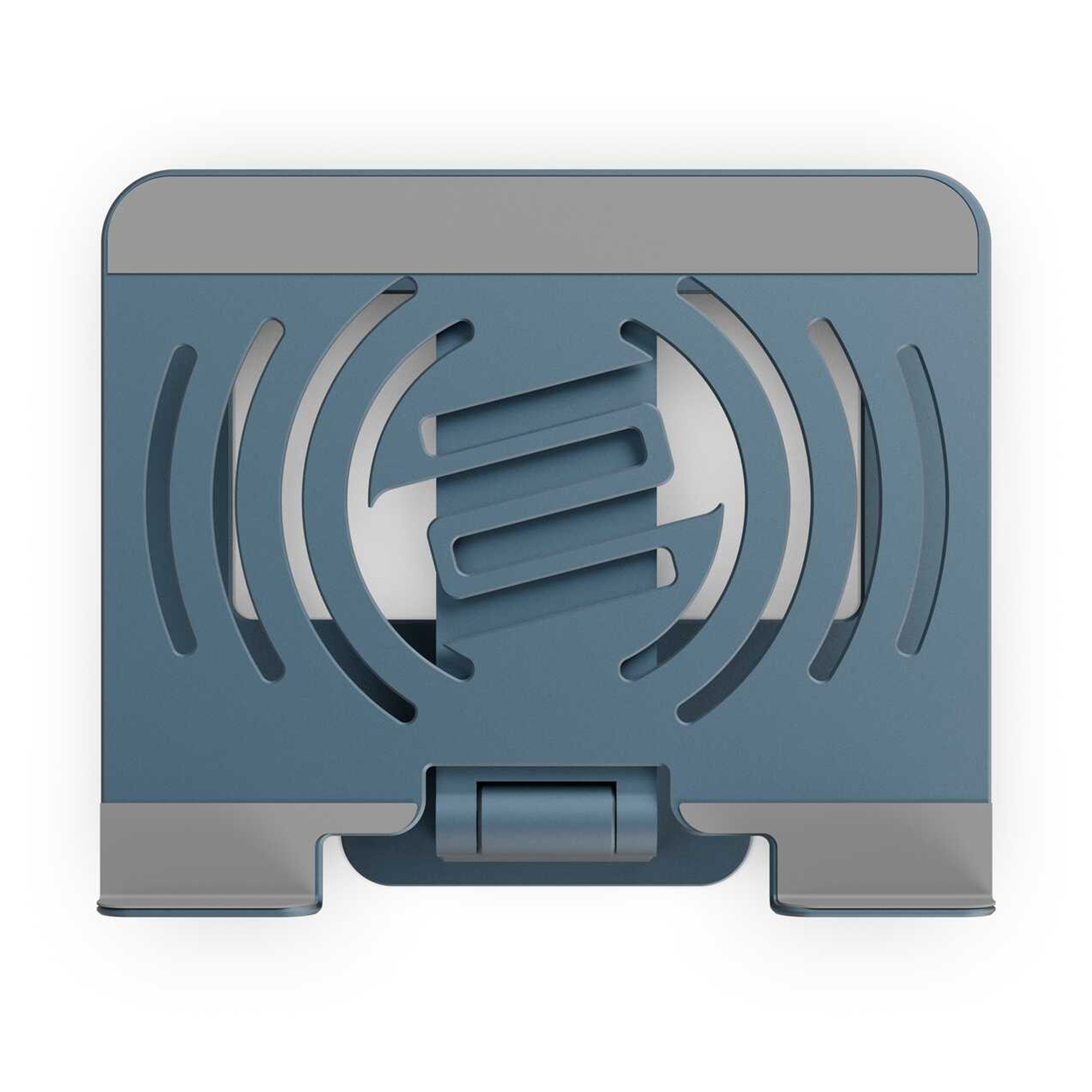 The laptop stand's ultra-thin, lightweight, yet durable aluminium construction combines maximum load capacity with space-saving and convenient features. The 360° rotating base allows for individual, ergonomic positioning in both C and Z positions. Infinitely adjustable to suit almost any work environment, it is held securely in place by recessed mounting screws. Non-slip pads under the base and rubber padding on the top protect laptops or tablets (sized 8–15 inches), and ensure a secure, reliable stand.