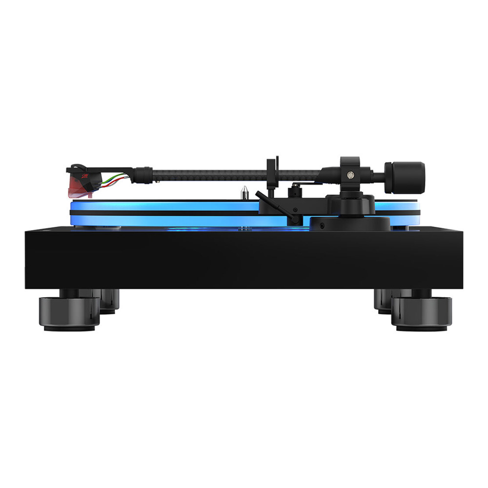The included 0.8" thick, 3.75 lb acrylic platter is precisely manufactured to give your vinyl an even playing surface without requiring a separate mat. It gives the TURN 7 a modern look, which can be enhanced by turning on the blue LEDs added underneath the platter, which give the platter a warm and inviting glow.