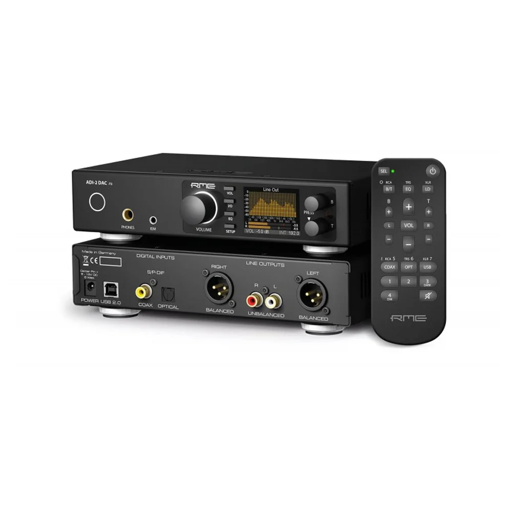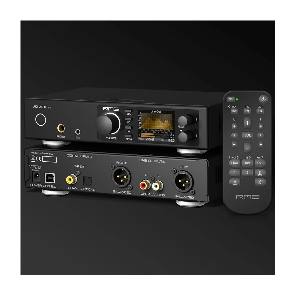 The RME ADI-2 DAC FS is a two-channel DAC and headphone amplifier. With a bit depth of up to 32 bits and a sampling frequency of up to 758 kHz, the device provides a signal-to-noise ratio of 120 dBA. Reference-level specifications are combined with a wide range of features. A powerful DSP adds all necessary types of audio processing, including a 5-band parametric equalizer, quick adjustment of high and low frequencies, crossfeed channel interpenetration adjustment, and a new volume control concept.
