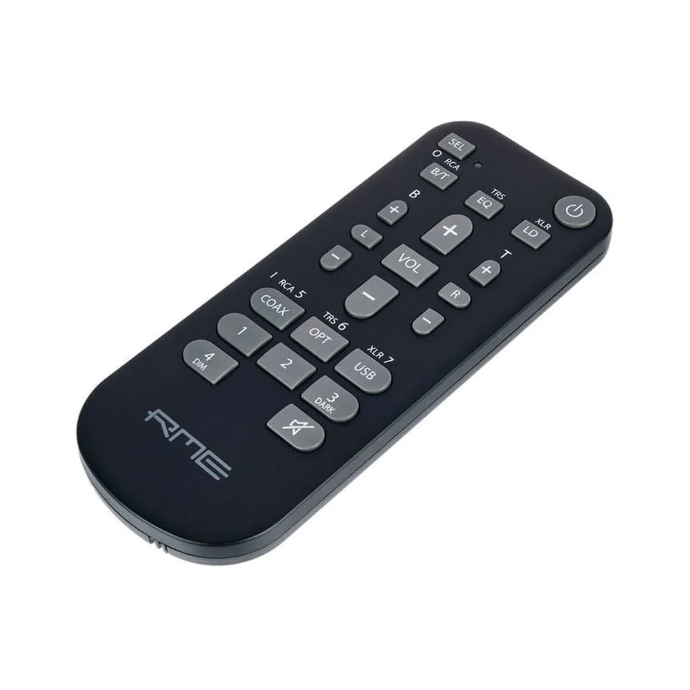 The device has balanced and unbalanced analog outputs. There are S/PDIF inputs: coaxial and optical, supporting the ADAT standard in a 2-channel variant. The RME ADI-2 DAC FS has an asynchronous USB port that accepts audio formats at the highest available resolution. An external adapter is used as the power supply. You can even connect an external battery to the power connector, which will positively impact sound quality. A new 22-button remote control is provided for DAC control.