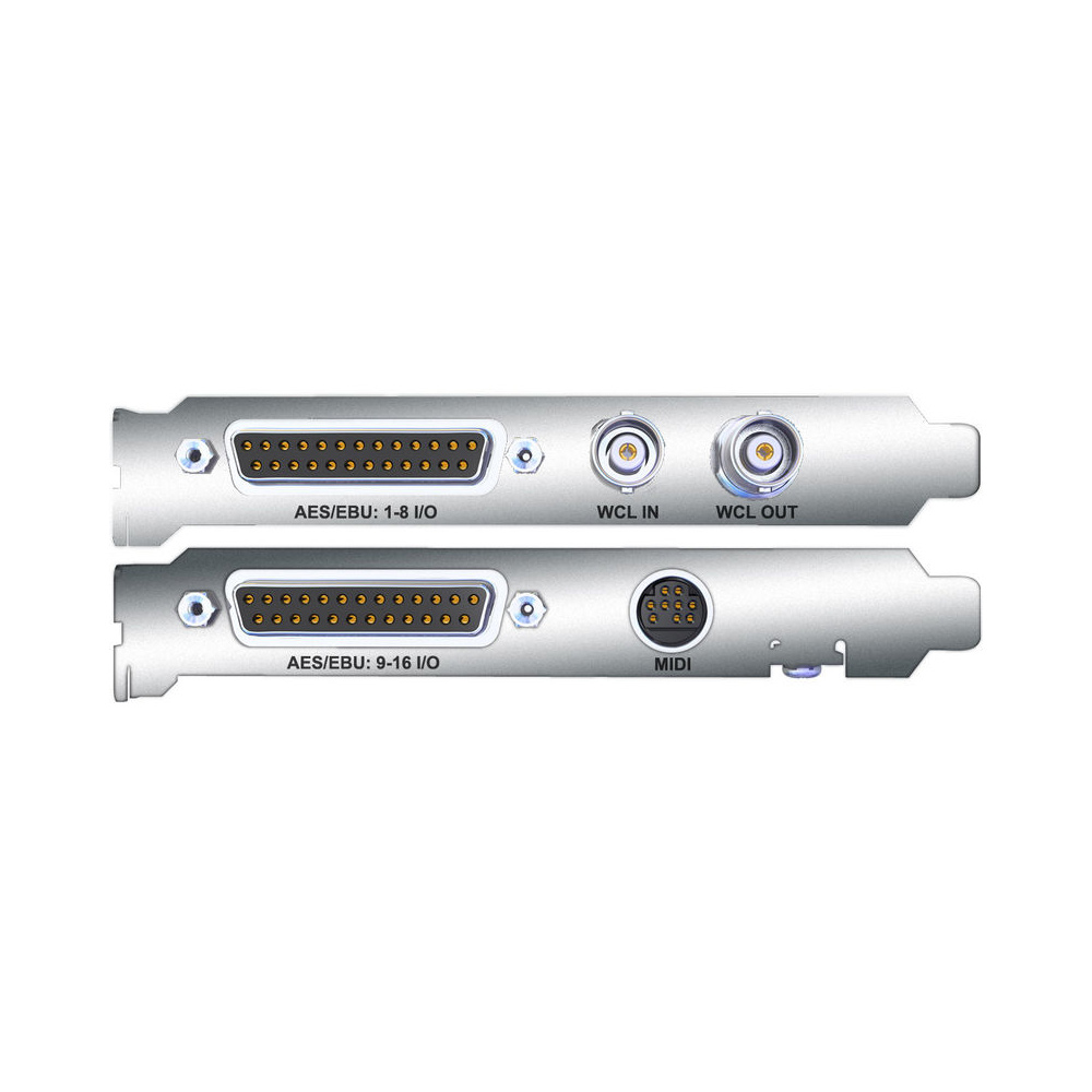 The RME HDSPe AES is a compact PCI Express card with a digital AES/EBU interface. It features eight AES inputs (16 channels) with a sampling frequency of 192 kHz. Additionally, the RME HDSPe AES includes two MIDI In/Out and Word Clock In/Out. This makes it the perfect solution for professional users in radio, television, theater, and any professional studio settings. The RME HDSPe AES also features Word Clock input and output, as well as a 25-pin D-sub connector (pinout corresponds to Tascam devices) for connecting a cable adapter with four AES input and output XLR connectors.