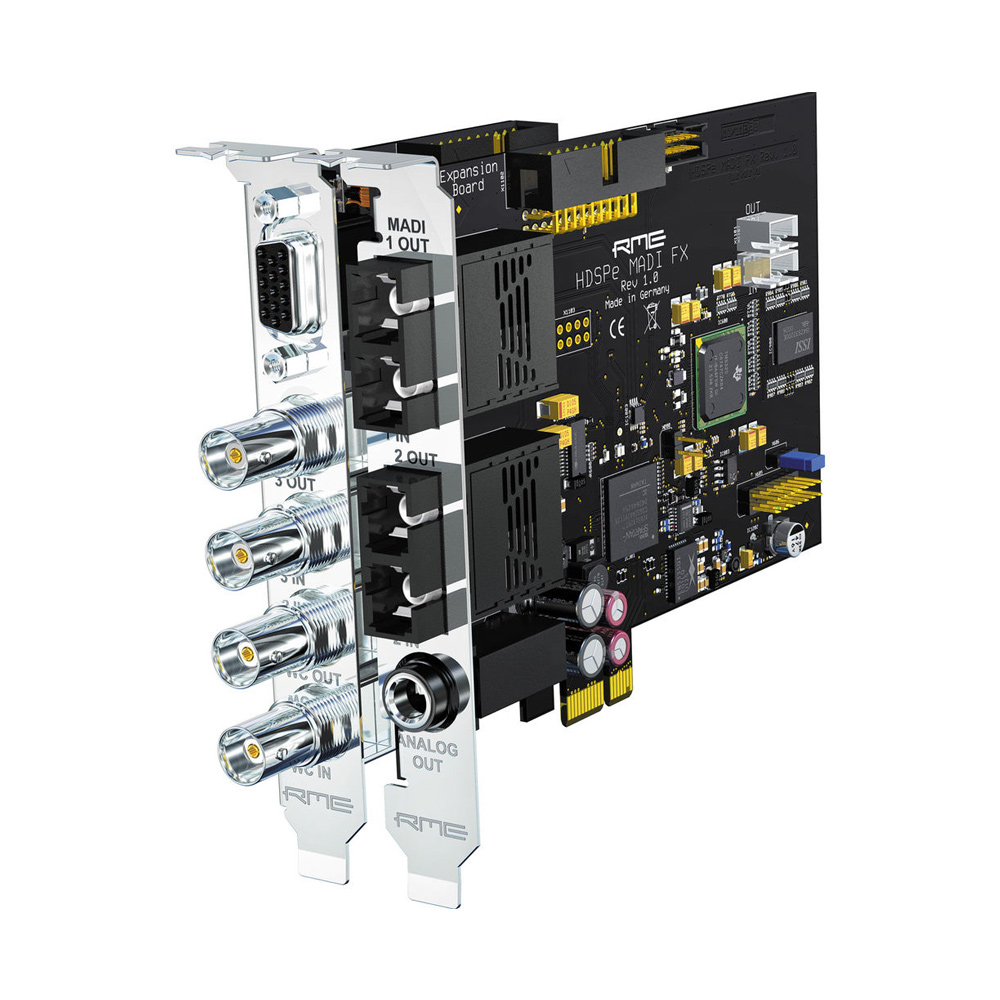 HDSPe MADI FX features 390 audio channels and three inputs/outputs - two optical and one coaxial, as well as one AES/EBU input/output and one analog output for monitoring. The newly developed modular core Hammerfall Pro Audio Core processes three times the number of channels compared to previous MADI interfaces, reducing the system load and ensuring low latency on modern computers.