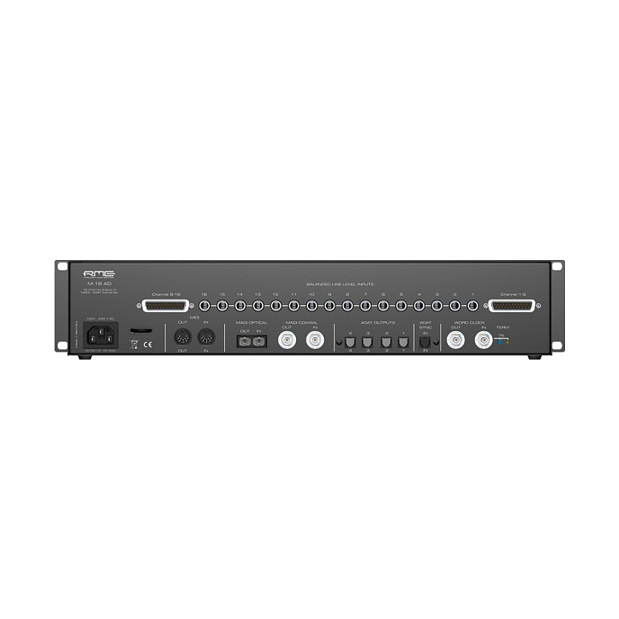 The use of the latest conversion technologies in RME M-16 AD ensures not only a sampling frequency of up to 192 kHz, but also a signal-to-noise ratio of 116 dB on all channels. In addition, RME M-16 AD features limiter functions, providing effective protection for the analog signal from overloads. RME M-16 AD has MADI and ADAT inputs/outputs, 6.3 mm (TRS) analog inputs, MIDI remote control and MIDI over MADI. RME M-16 AD operates flawlessly at different network voltages.