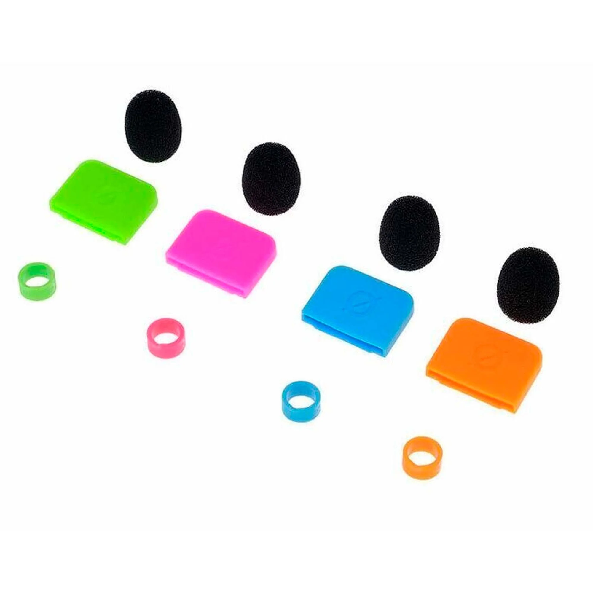 The RODE COLORS 2 is a set of four colorful windshield screens, identification rings for cables, tags, and sticker sets for RODE Wireless GO, Wireless GO II, Lavalier GO, and smartLav+, which simplify channel identification in multi-microphone systems.