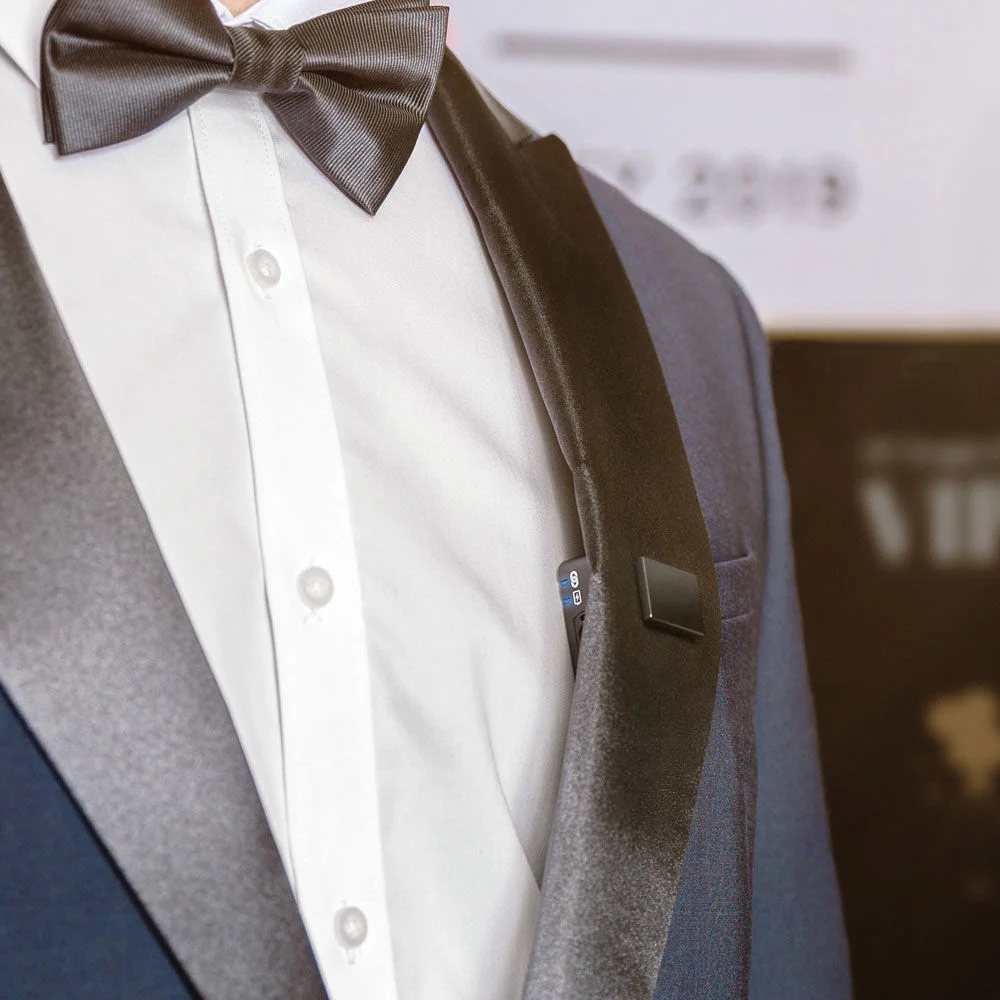 MagClip GO is a powerful magnetic clip that provides full flexibility when placing the Wireless GO transmitter on talent.