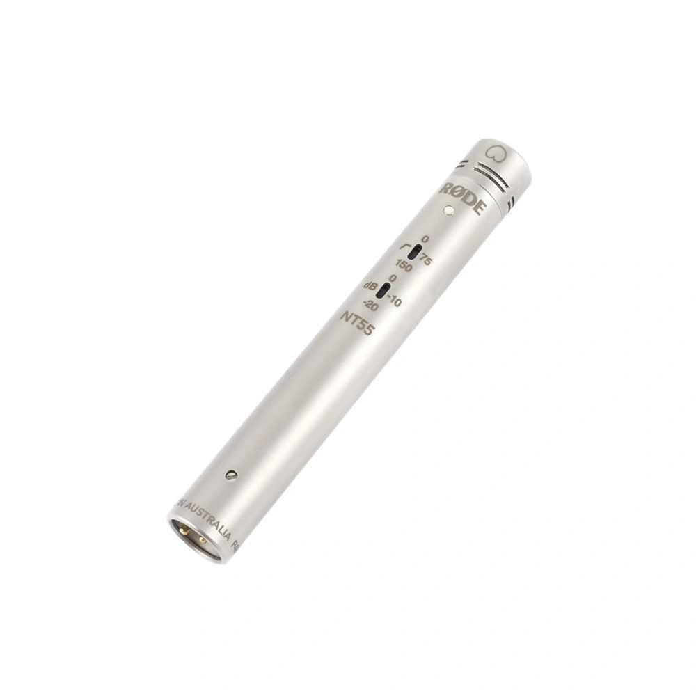 The RODE NT55 offers exceptional performance with its low self-noise level and balanced output. It provides a wide dynamic range and frequency response. The microphone is constructed using durable satin nickel. Additionally, it includes a three-position low-frequency filter at 75Hz or 150Hz.