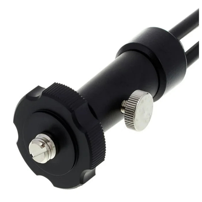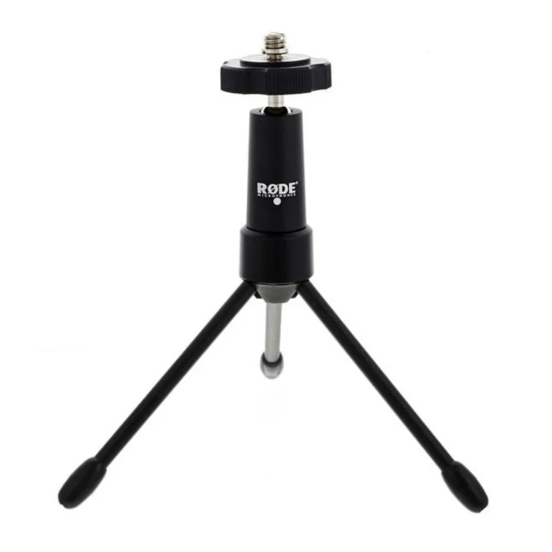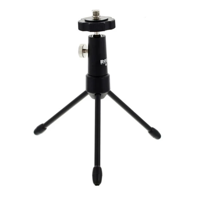 The folding mini stand is designed for mounting lightweight microphones on a desk. It allows you to place the microphone anywhere and focus on recording audio. The clamp enables the microphone to rotate 360 degrees.