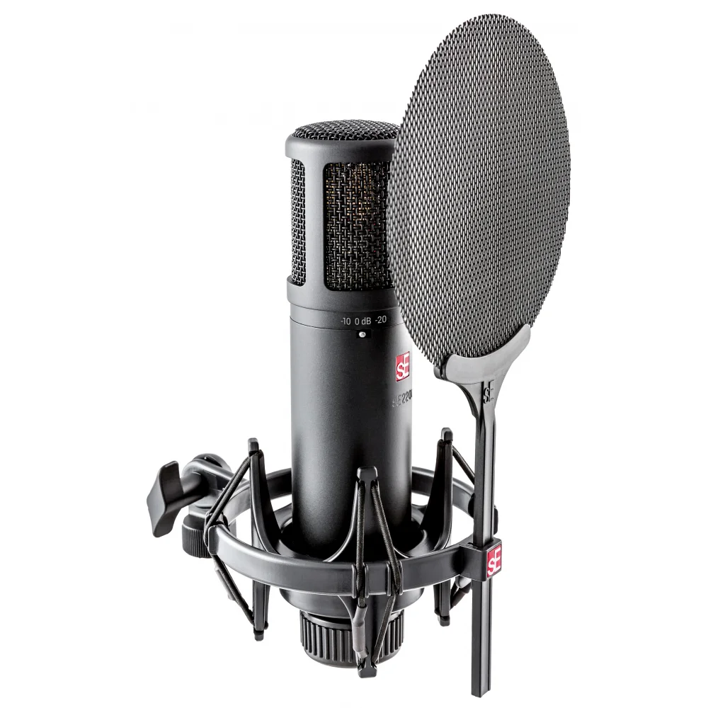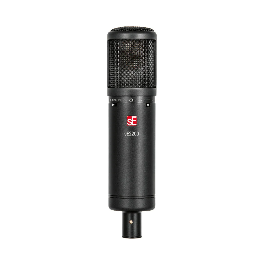 The SE2200 microphone features -10 dB and -20 dB switches for an extended dynamic range, allowing for various applications and even the loudest instruments. It also has two switchable low-frequency filters (80 Hz or 160 Hz) to eliminate unwanted rumble and noise and compensate for excessive bass when the microphone is placed close to the source.