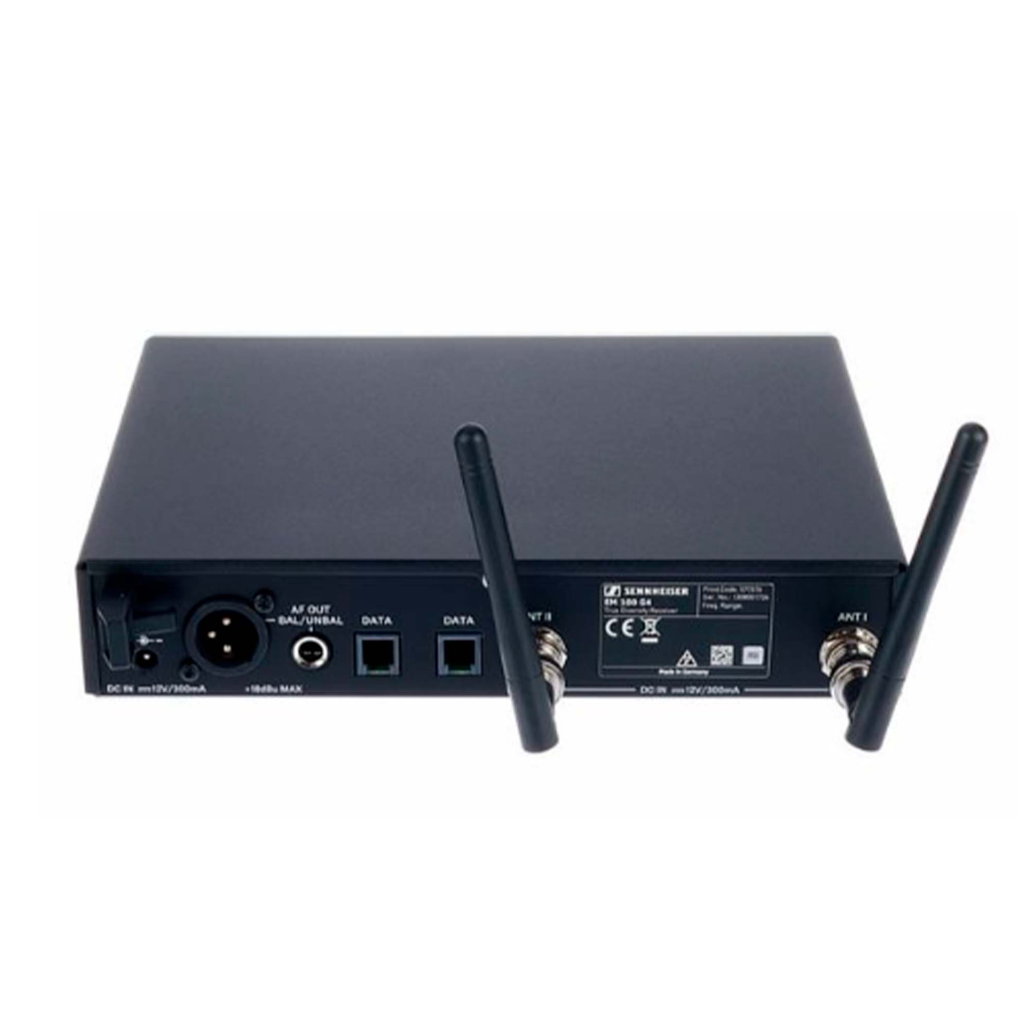 The Sennheiser EM 100 G4 is a convenient and intuitive receiver that allows for easy wireless transmission of microphone or instrument signals. The housing is made of fully metal construction, protecting the internals from damage during operation, and the semi-rack form saves workspace. The package also includes a power adapter, two antennas, and an RJ10 cable.
